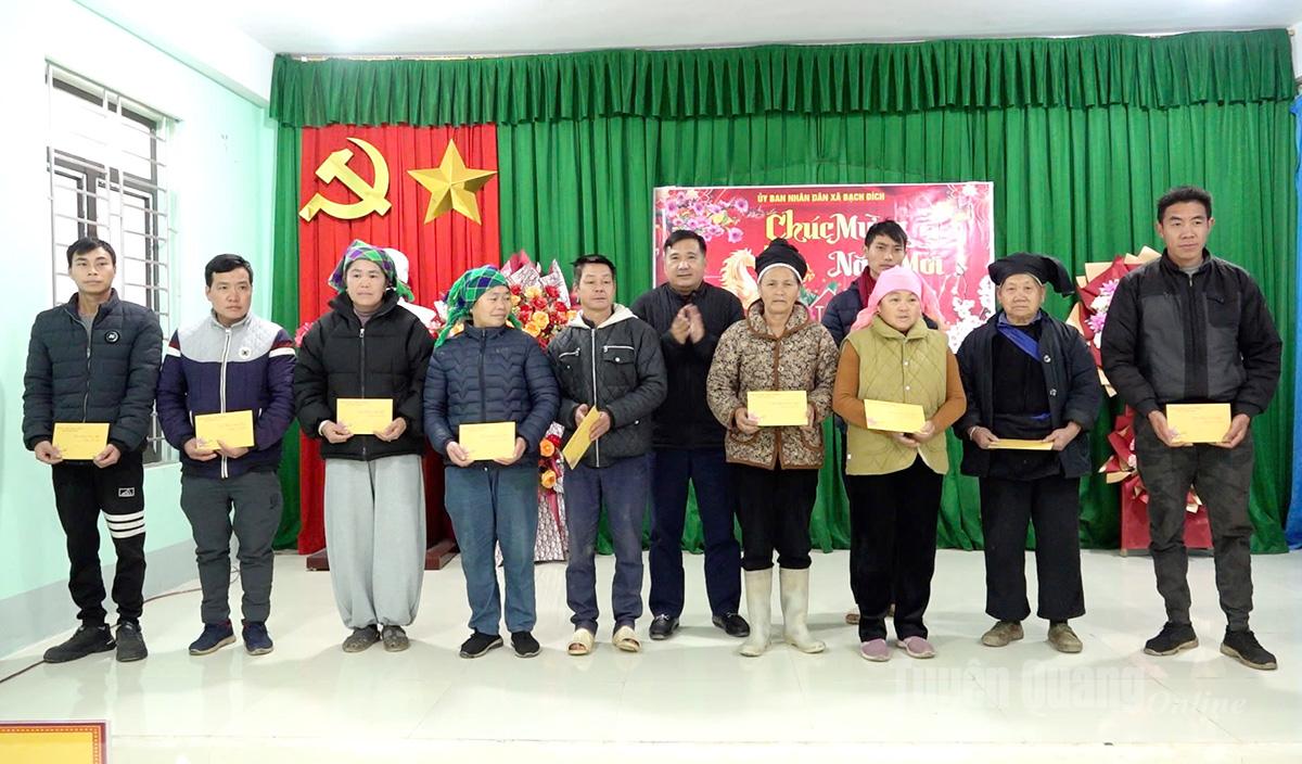Phó Chủ tịch Thường trực HĐND tỉnh Hầu Minh Lợi tặng quà chúc Tết xã Bạch Đích.