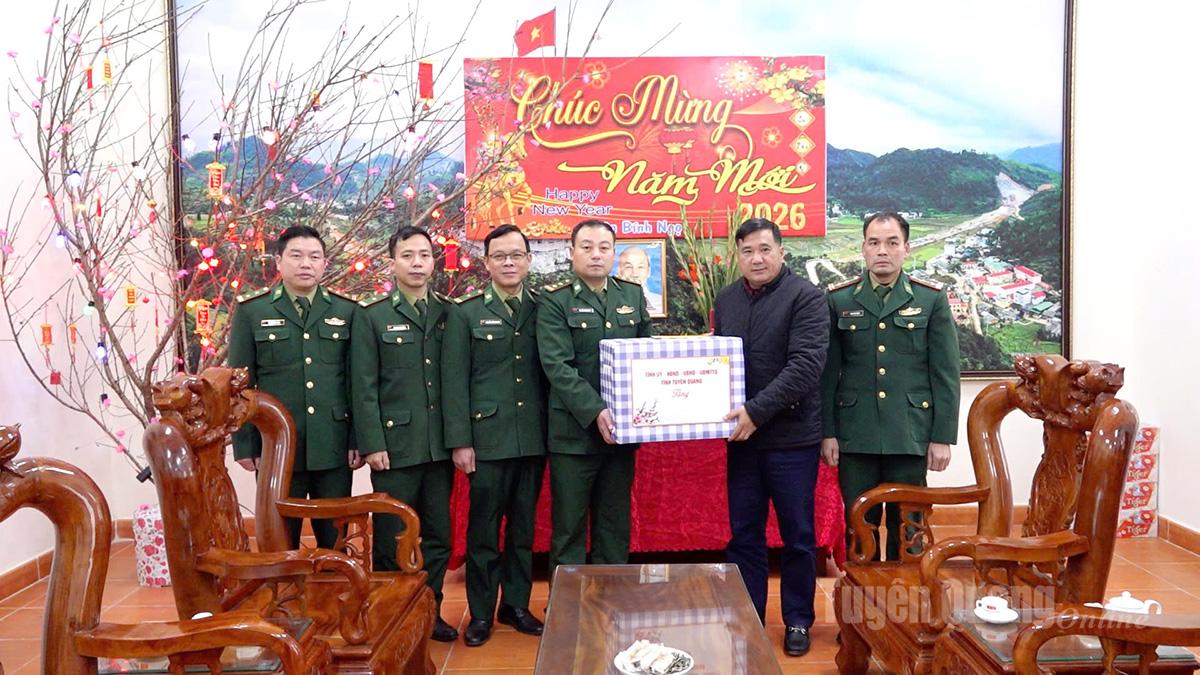 Phó Chủ tịch Thường trực HĐND tỉnh Hầu Minh Lợi tặng quà Đồn Biên phòng Bạch Đích.