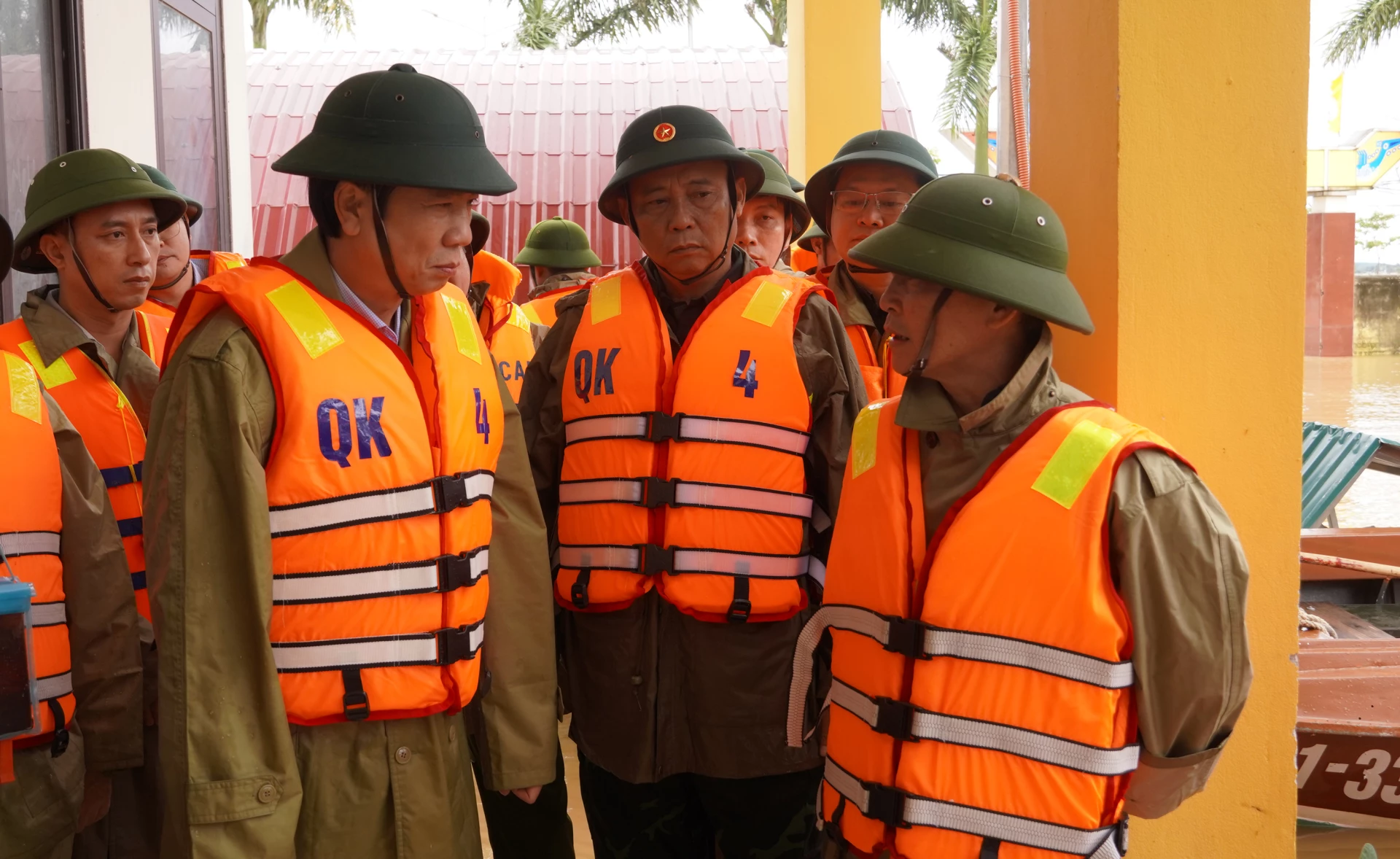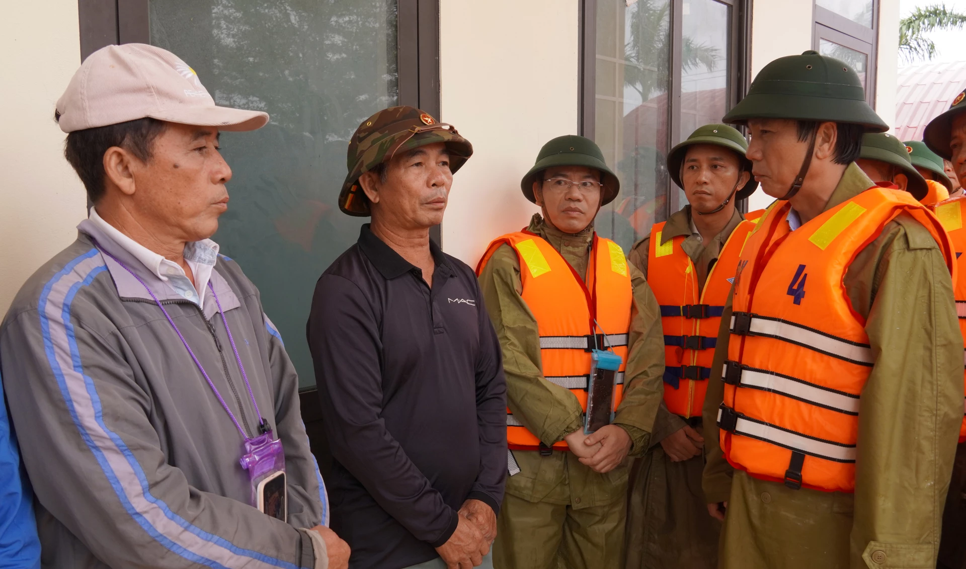 Đồng chí Phó Chủ tịch Thường trực UBND tỉnh nắm tình hình ứng phó với mưa lũ tại xã Lệ Thủy - Ảnh: N.H