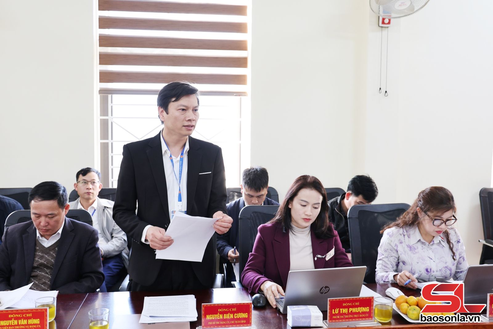 Lãnh đạo UBND xã Mường Chanh báo cáo tại cuộc làm việc.