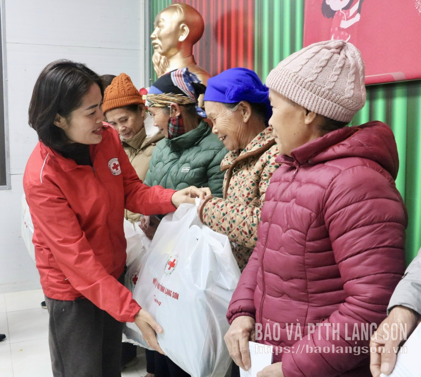 Lãnh đạo Hội Chữ thập đỏ tỉnh trao quà cho các hộ dân có hoàn cảnh khó khăn tại xã Cao Lộc