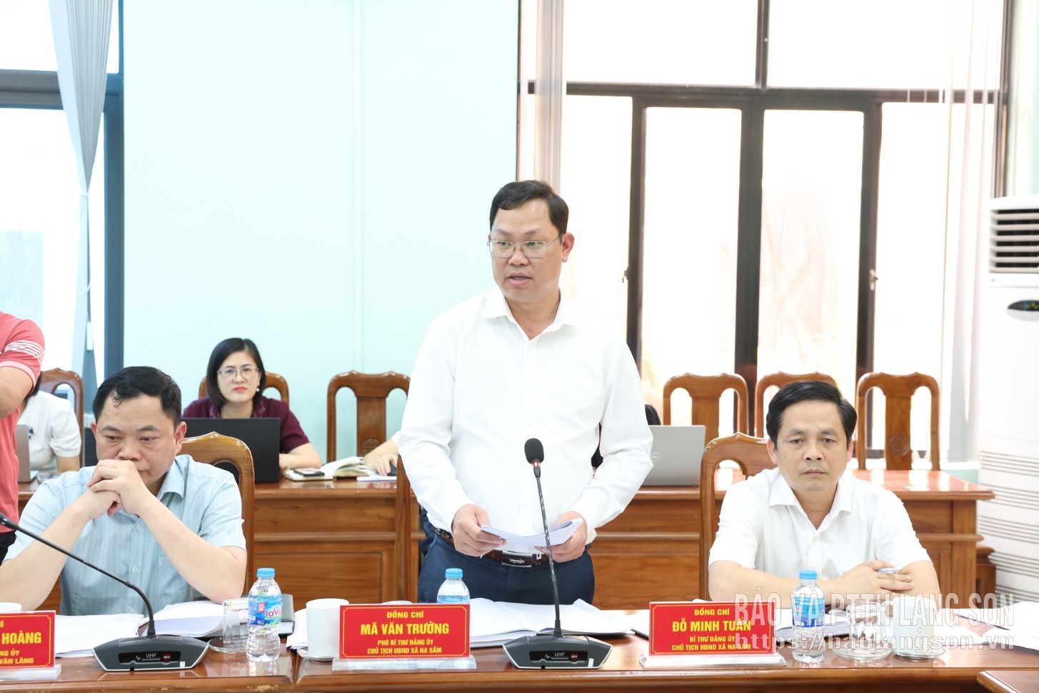 Lãnh đạo xã Na Sầm báo cáo tại buổi kiểm tra