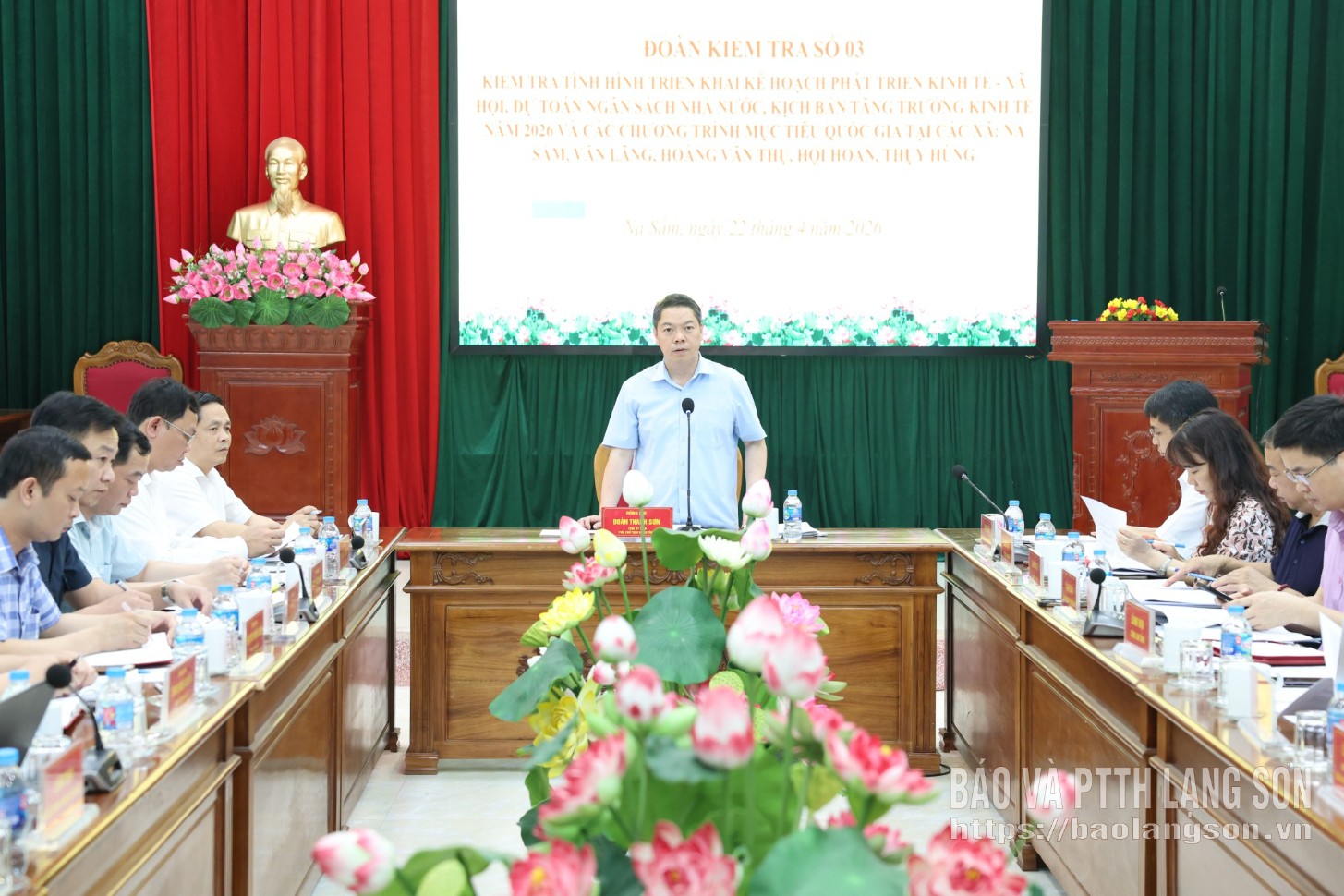 Đồng chí Đoàn Thanh Sơn, Phó Chủ tịch UBND tỉnh phát biểu kết luận tại buổi kiểm tra các xã: Na Sầm, Văn Lãng, Hoàng Văn Thụ, Hội Hoan, Thụy Hùng