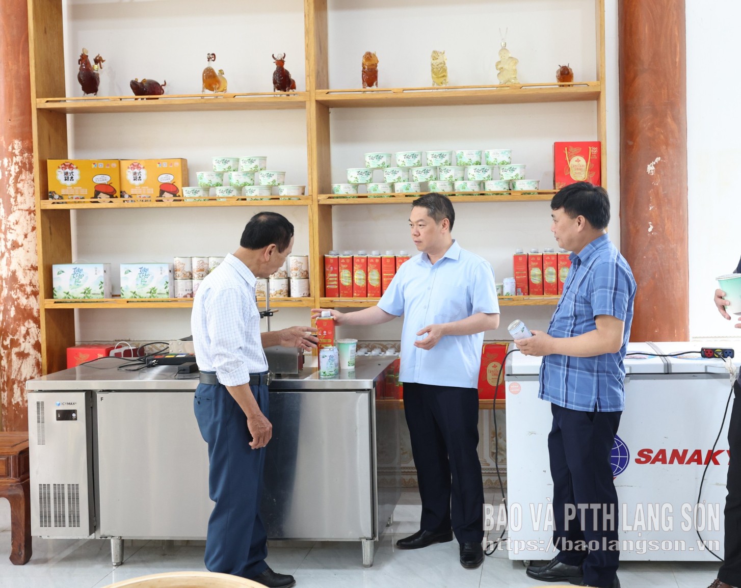 Đồng chí Đoàn Thanh Sơn, Phó Chủ tịch UBND tỉnh kiểm tra thực tế mô hình sản xuất, kinh doanh thạch đen tại xã Tràng Định