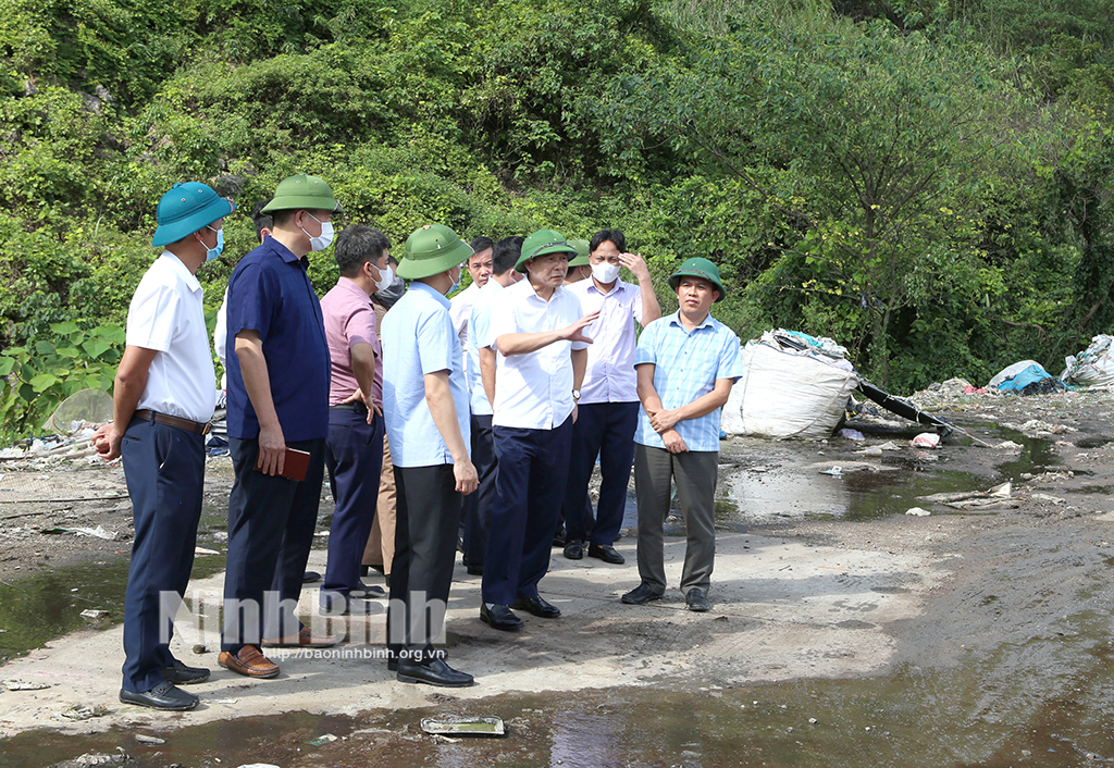 Đồng chí Phó Chủ tịch UBND tỉnh và Đoàn đi kiểm tra thực địa tại Nhà máy Xử lý chất thải rắn Ninh Bình (phường Trung Sơn).
