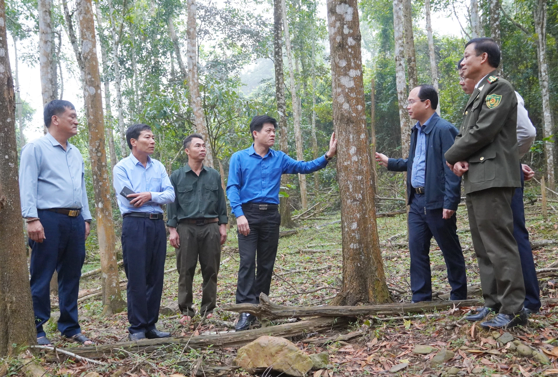 Đồng chí Phó Chủ tịch UBND tỉnh Lê Văn Bảo kiểm tra khu vực rừng thuộc Ban Quản lý rừng phòng hộ Quảng Ninh quản lý - Ảnh: X.P