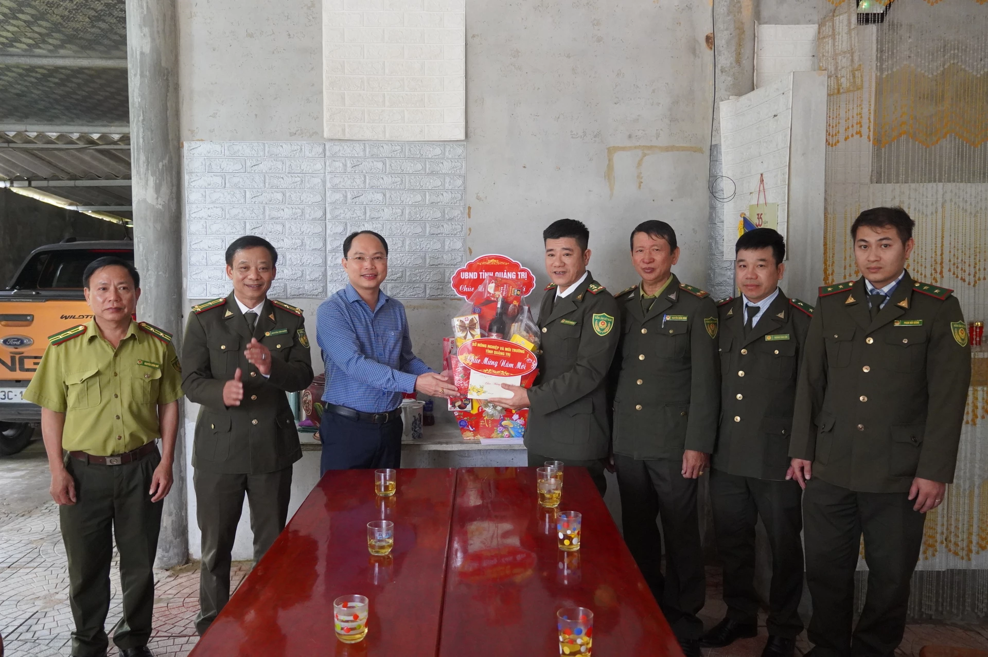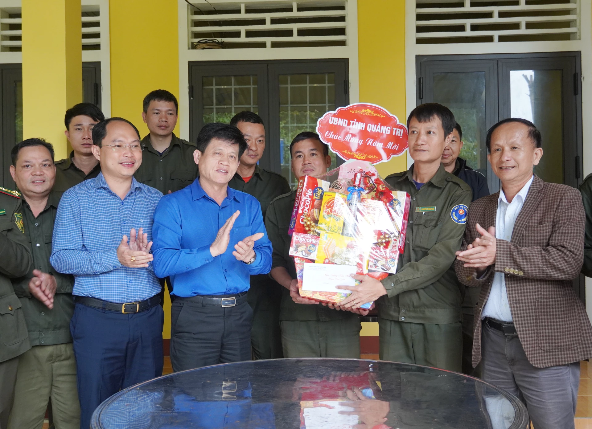 Theo đó, đồng chí Phó Chủ tịch UBND tỉnh cùng đoàn công tác đã đến thăm, chúc Tết tại chốt bảo vệ rừng Khe Sung, Ban Quản lý rừng phòng hộ Quảng Ninh; Trạm quản lý bảo vệ rừng Vít Thù Lù, thuộc Chi nhánh Lâm trường Khe Giữa, Công ty TNHH MTV LCN Long Đại; Trạm Kiểm lâm đường 16, Hạt Kiểm lâm Kim Ngân và Trạm quản lý, bảo vệ rừng Vĩnh Hà-Vĩnh Ô, Ban Quản lý rừng phòng hộ lưu vực sông Bến Hải.