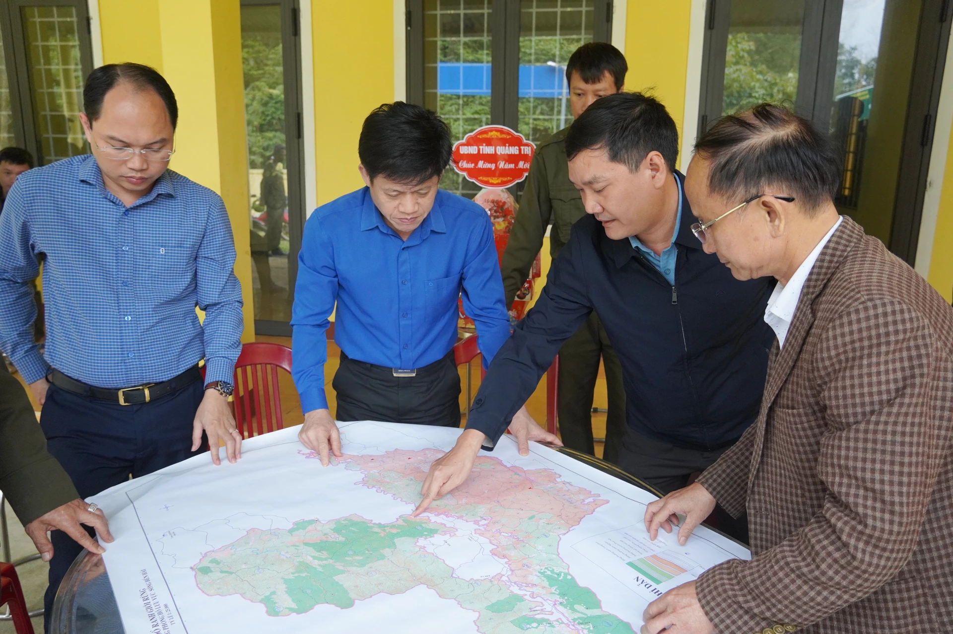 Đồng chí Phó Chủ tịch UBND tỉnh Lê Văn Bảo nghe báo cáo tình hình thực hiện nhiệm vụ tại Trạm quản lý, bảo vệ rừng Vĩnh Hà-Vĩnh Ô, Ban Quản lý rừng phòng hộ lưu vực sông Bến Hải - Ảnh: X.P
