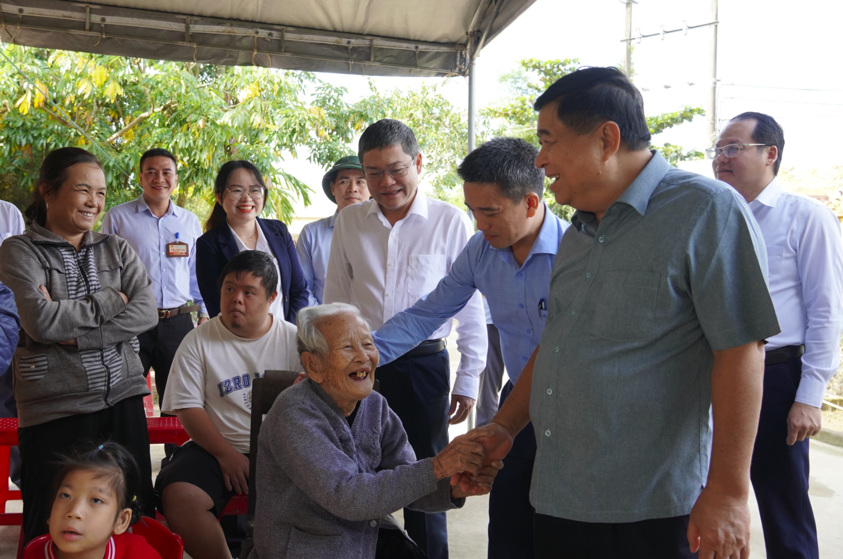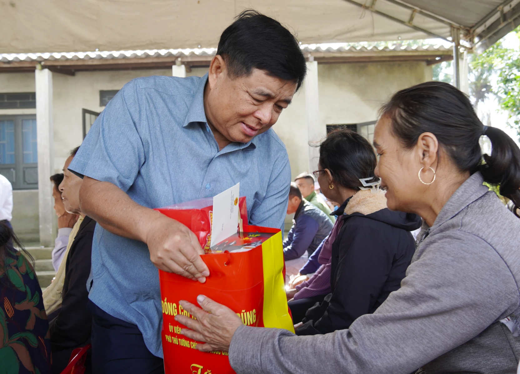 Đồng chí Phó Thủ tướng Chính phủ Nguyễn Chí Dũng tặng quà, động viên bà con thôn Trung Đơn, xã Diên Sanh - Ảnh: X.P
