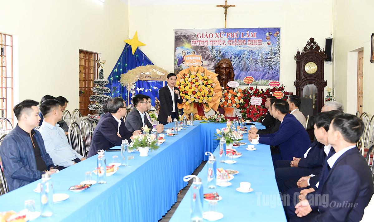 Đến thăm và chúc mừng bà con giáo dân tại Giáo xứ Phú Lâm, phường Mỹ Lâm, thay mặt các đồng chí lãnh đạo Ban Tuyên giáo và Dân vận Trung ương, đồng chí Triệu Tài Vinh gửi lời chúc mừng đến linh mục và các vị chức sắc, chức việc cùng các giáo dân có một mùa Giáng sinh an lành, hạnh phúc.