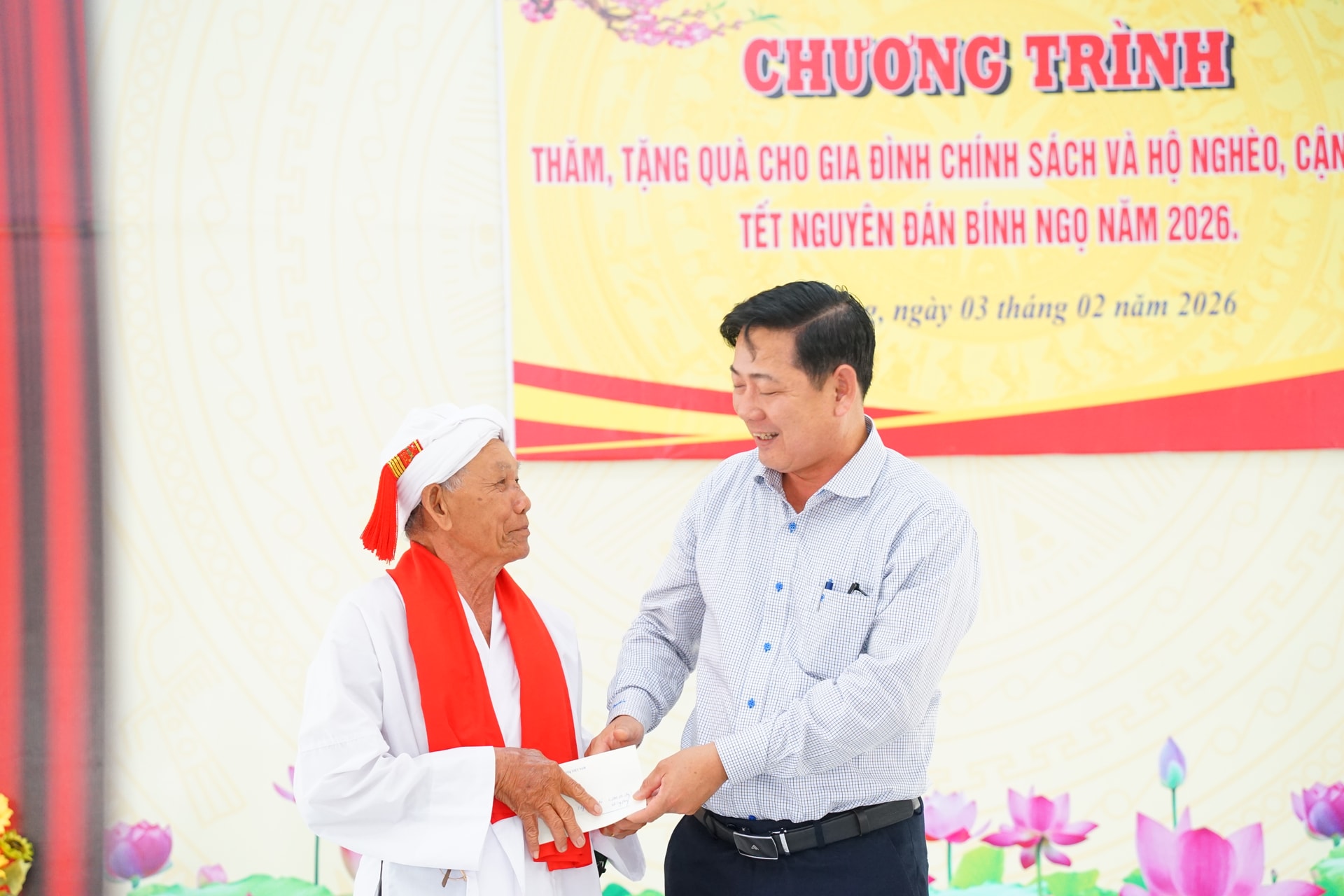 Phó Chủ tịch HĐND tỉnh cũng trao tặng 4 suất quà cho gia đình chính sách và người có công, mỗi suất trị giá 5 triệu đồng; Thăm chúc Tết ông Đoàn Minh Duyên, Sư cả người có uy tín trong cộng đồng dân cư tại địa phương. Với tổng kinh phí hơn 180 triệu đồng.