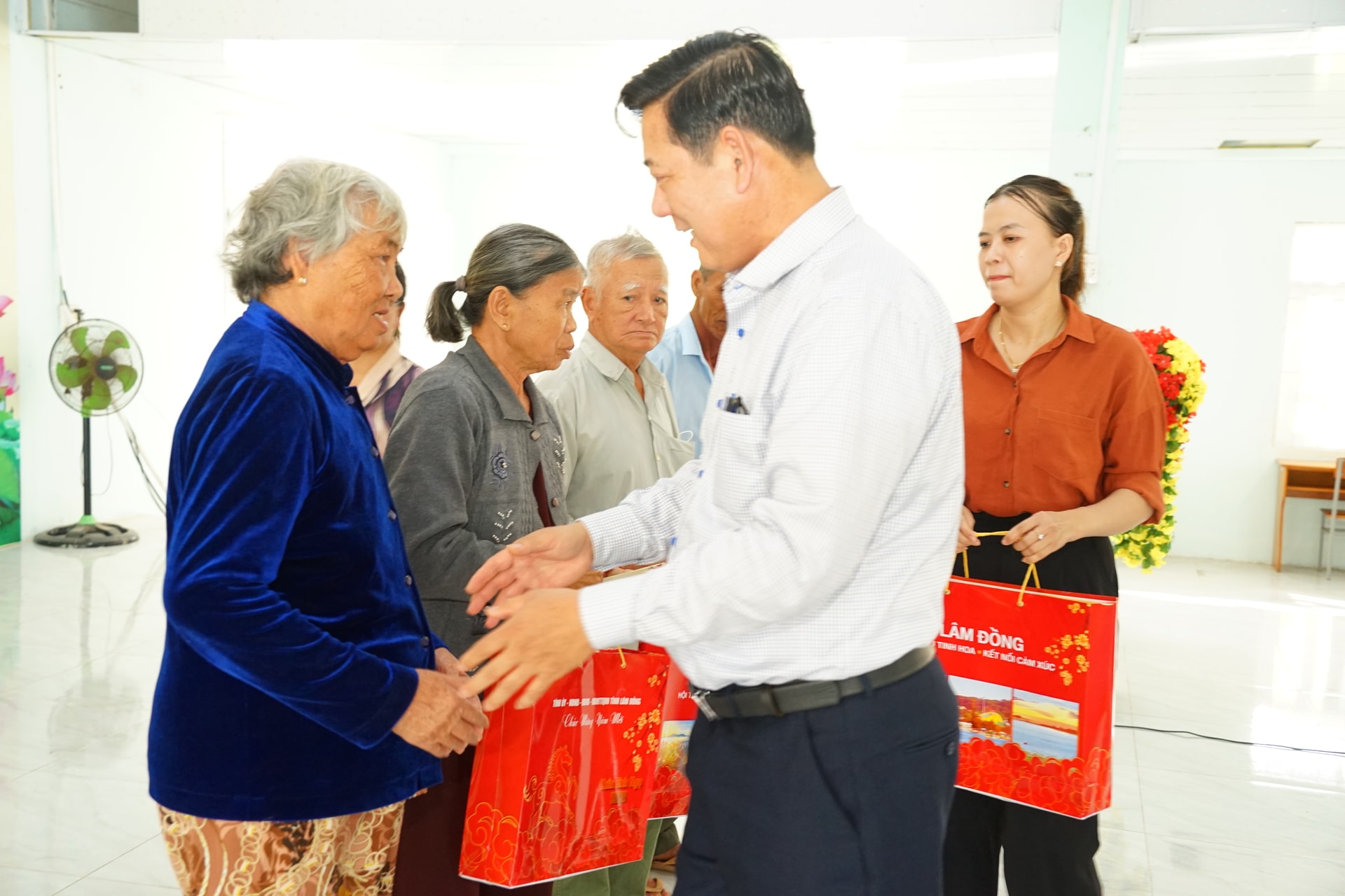 Đồng chí Tiêu Hồng Phúc, Ủy viên Ban Thường vụ Tỉnh ủy, Phó Chủ tịch HĐND tỉnh Lâm Đồng trao quà cho các gia đình chính sách, có công cách mạng tại xã Tuy Phong