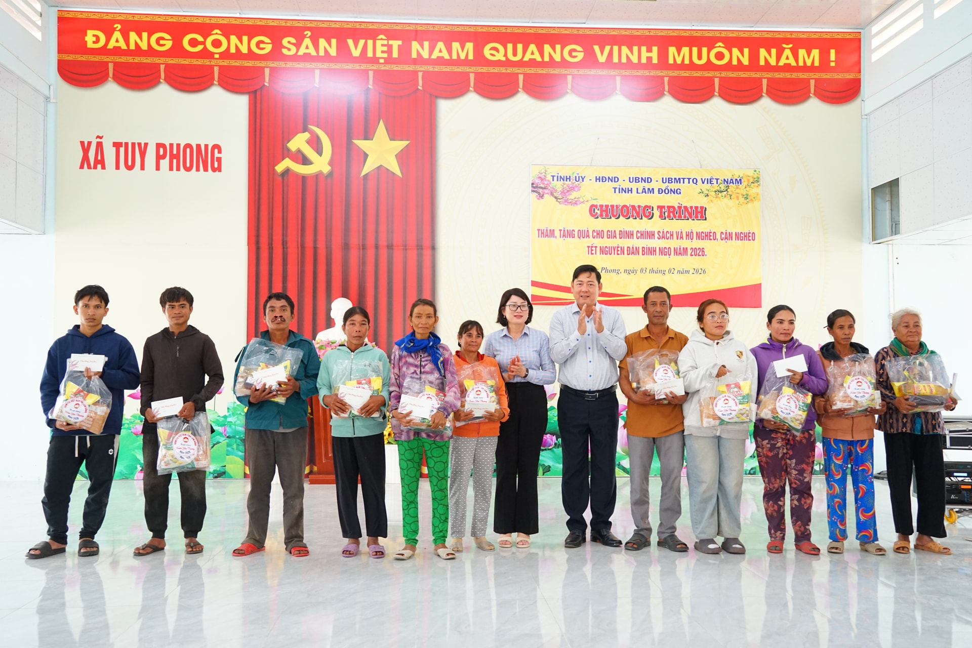 Nhân dịp Tết Nguyên đán đang đến gần, đồng chí Tiêu Hồng Phúc, Ủy viên Ban Thường vụ Tỉnh ủy, Phó Chủ tịch HĐND tỉnh đã thăm, chúc Tết hộ nghèo, cận nghèo, hộ gia đình khó khăn, gia đình có công cách mạng, thăm chức sắc tôn giáo có uy tín tại xã Tuy Phong, tỉnh Lâm Đồng.