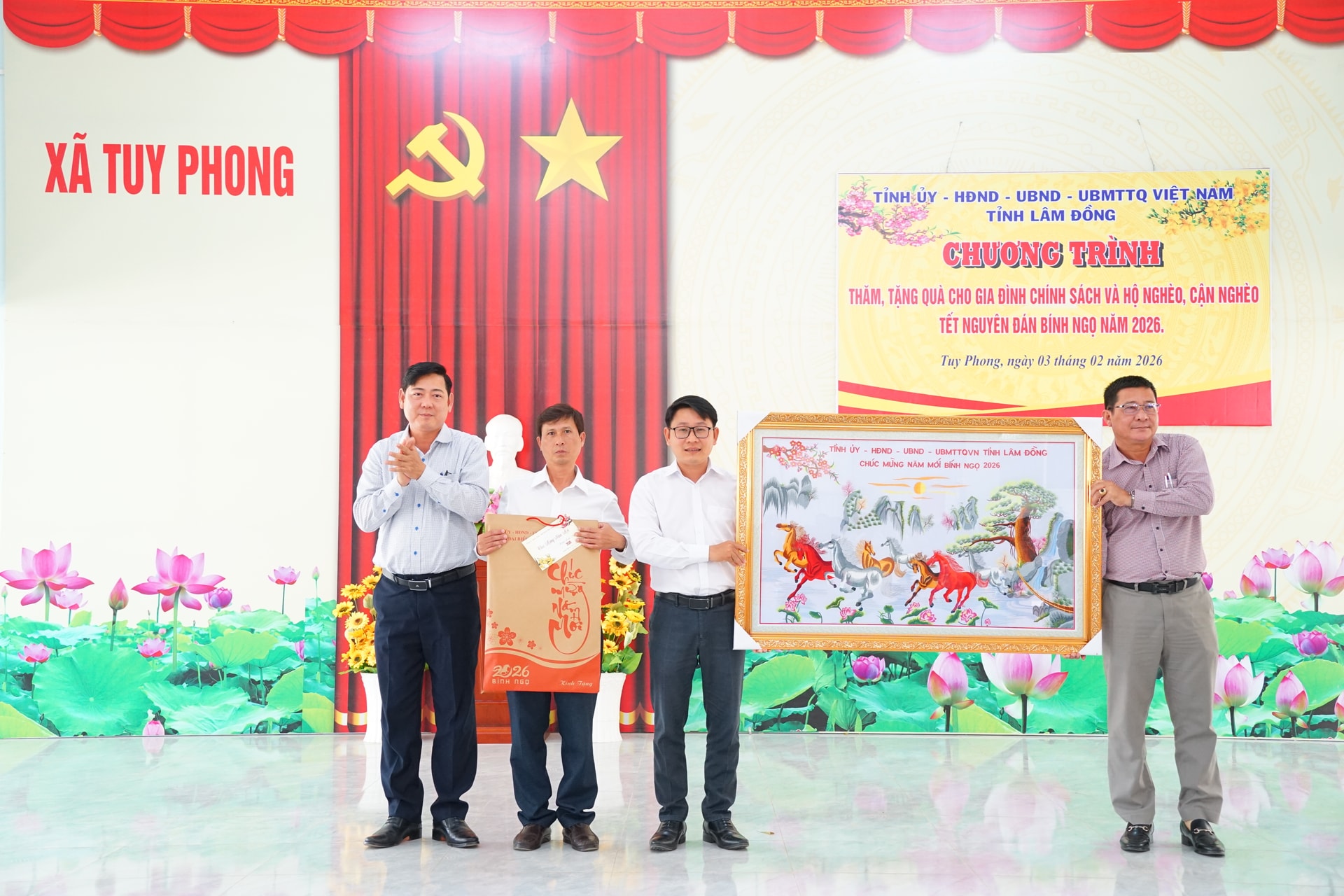 Dịp này, đồng chí Tiêu Hồng Phúc, Ủy viên Ban Thường vụ Tỉnh ủy, Phó Chủ tịch HĐND tỉnh Lâm Đồng cũng tặng quà cho xã Tuy Phong.
