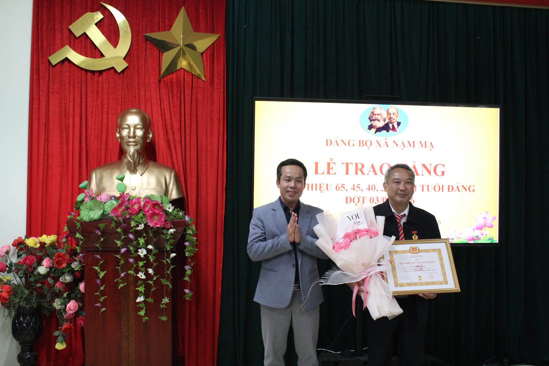 Trong đợt này, Đảng bộ xã Nậm Mạ vinh dự có 6 đảng viên được trao tặng Huy hiệu Đảng. Trong đó, có 1 đồng chí được trao Huy hiệu 65 năm tuổi Đảng; 2 đồng chí nhận Huy hiệu 45 năm tuổi Đảng; 2 đồng chí nhận Huy hiệu 40 năm tuổi Đảng; 1 đồng chí nhận Huy hiệu 30 năm tuổi Đảng.
