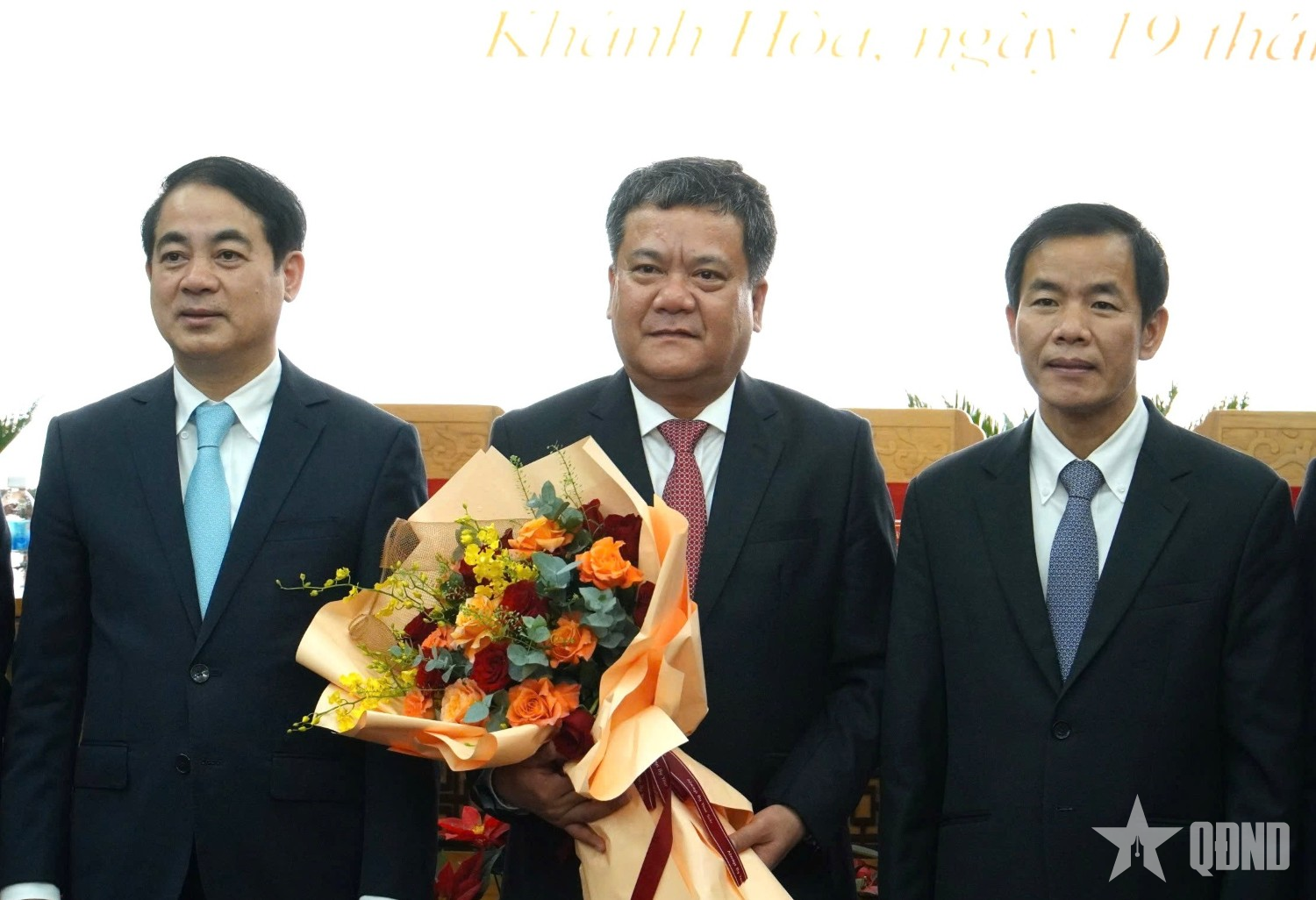 Lãnh đạo tỉnh Khánh Hòa và tỉnh Quảng Trị tặng hoa chúc mừng đồng chí Trần Phong.