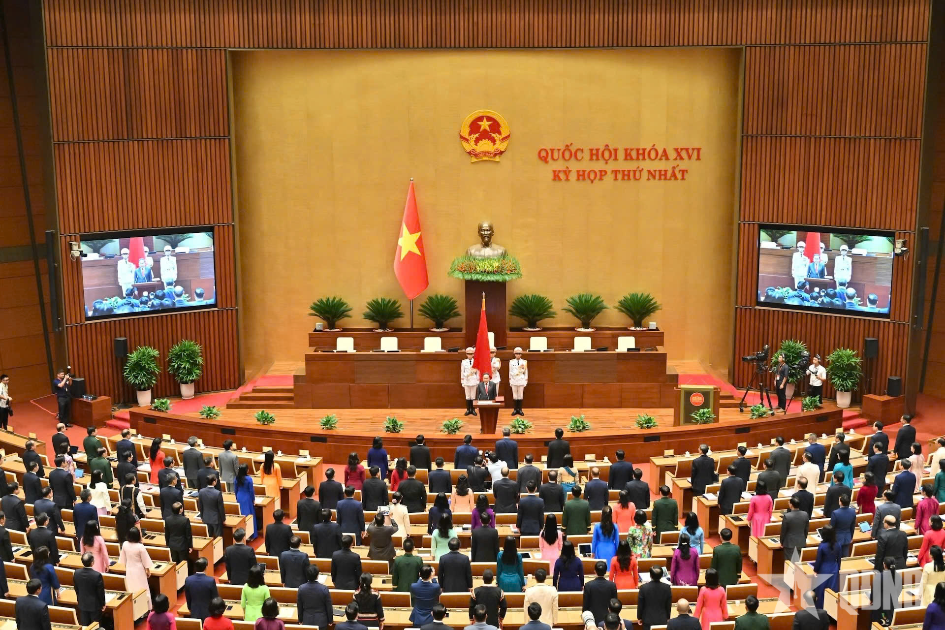 Dưới cờ đỏ sao vàng thiêng liêng của Tổ quốc, trước Quốc hội, trước đồng bào, cử tri cả nước, Chủ tịch Quốc hội nước Cộng hòa xã hội chủ nghĩa Việt Nam Trần Thanh Mẫn tuyên thệ: Tuyệt đối trung thành với Tổ quốc, với nhân dân, với Hiến pháp nước Cộng hòa xã hội chủ nghĩa Việt Nam; nỗ lực phấn đấu hoàn thành tốt nhiệm vụ được Đảng, Nhà nước và nhân dân giao phó.