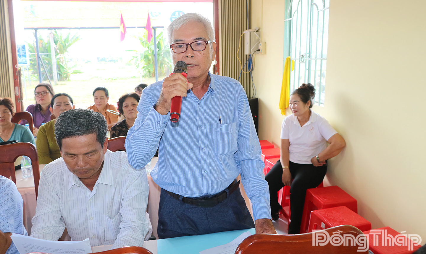 Người dân ấp Gò Tháp phát biểu tại Ngày hội.