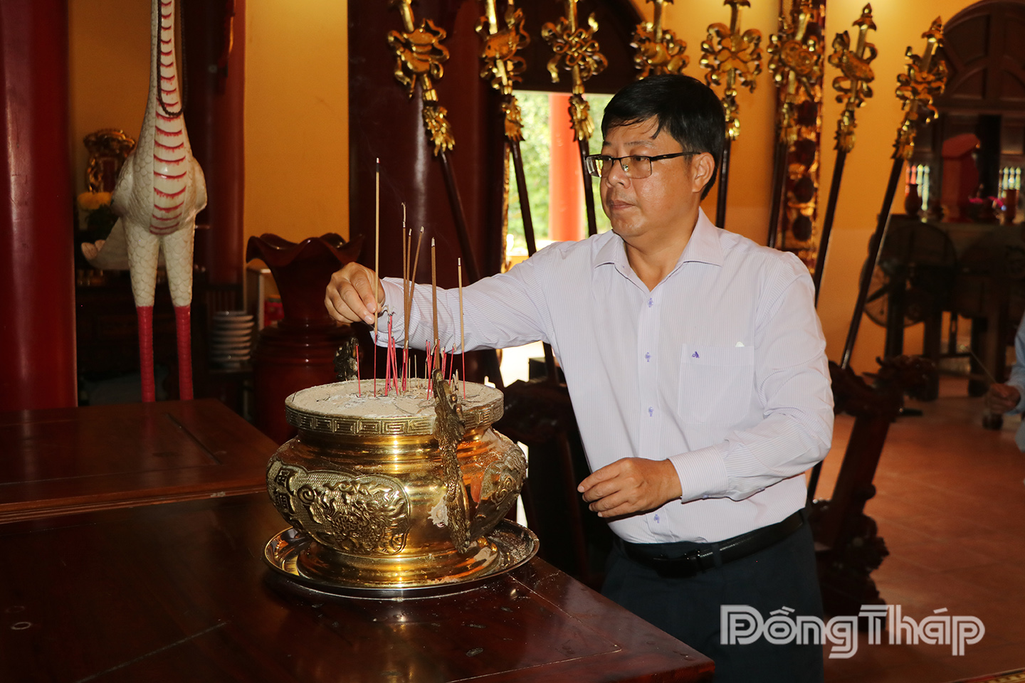 Đồng chí Trần Thanh Nguyên, Ủy viên Ban Thường vụ Tỉnh ủy, Phó Chủ tịch Hội đồng nhân dân tỉnh; cùng đại diện lãnh đạo Ủy ban Mặt trận Tổ quốc Việt Nam tỉnh, lãnh đạo xã Đốc Binh Kiều viếng, thắp hương tại Đền thờ Thiên hộ Võ Duy Dương.