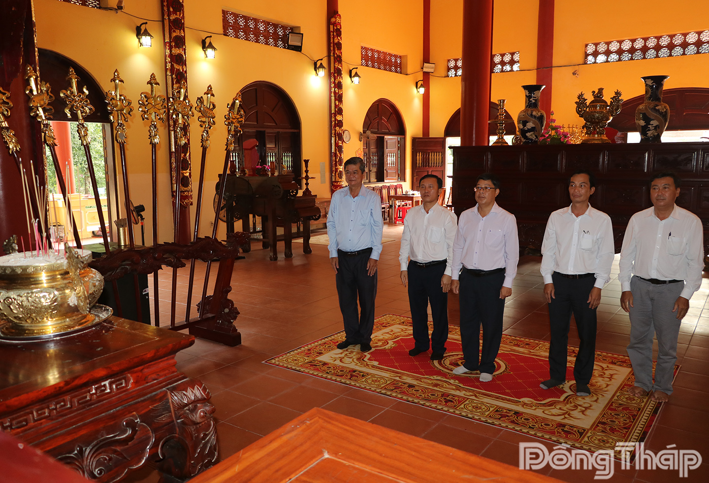 Trước đó, đồng chí Trần Thanh Nguyên, cùng đại diện lãnh đạo Ủy ban Mặt trận Tổ quốc Việt Nam tỉnh, xã Đốc Binh Kiều đến Khu di tích Gò Tháp viếng, thắp hương tại Đền thờ Thiên hộ Võ Duy Dương và Miếu bà Chúa Xứ.