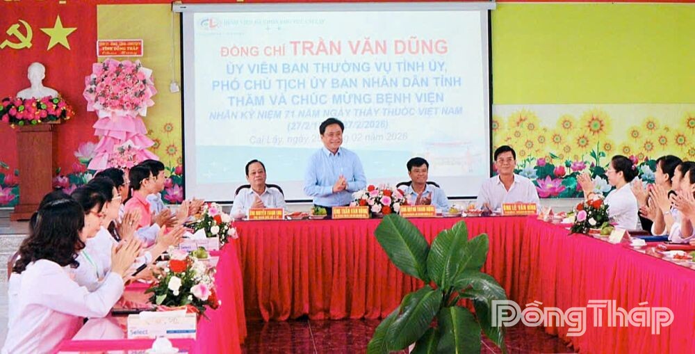 Phát biểu tại buổi gặp mặt, đồng chí Trần Văn Dũng ghi nhận và biểu dương những kết quả nổi bật của bệnh viện trong công tác khám, chữa bệnh, chăm sóc và bảo vệ sức khỏe Nhân dân.