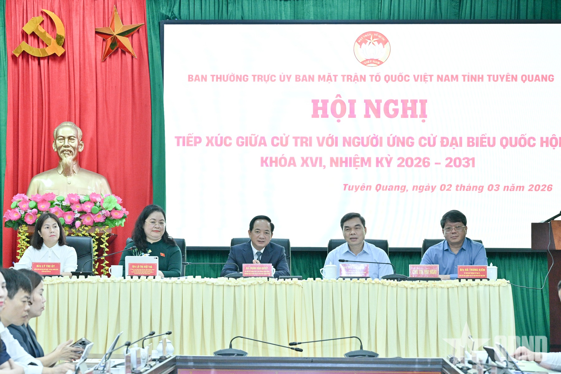 Tham gia tiếp xúc cử tri có đồng chí Trịnh Văn Quyết, Ủy viên Bộ Chính trị, Bí thư Trung ương Đảng, Trưởng ban Tuyên giáo và Dân vận Trung ương, cùng các ứng cử viên đại biểu Quốc hội khóa XVI tại đơn vị bầu cử số 3. Dự hội nghị còn có đồng chí Hầu A Lềnh, Ủy viên Trung ương Đảng, Bí thư Tỉnh ủy Tuyên Quang; đại diện đoàn công tác Trung ương, lãnh đạo tỉnh Tuyên Quang, đại diện các sở, ban, ngành và đông đảo cử tri tại các điểm cầu.