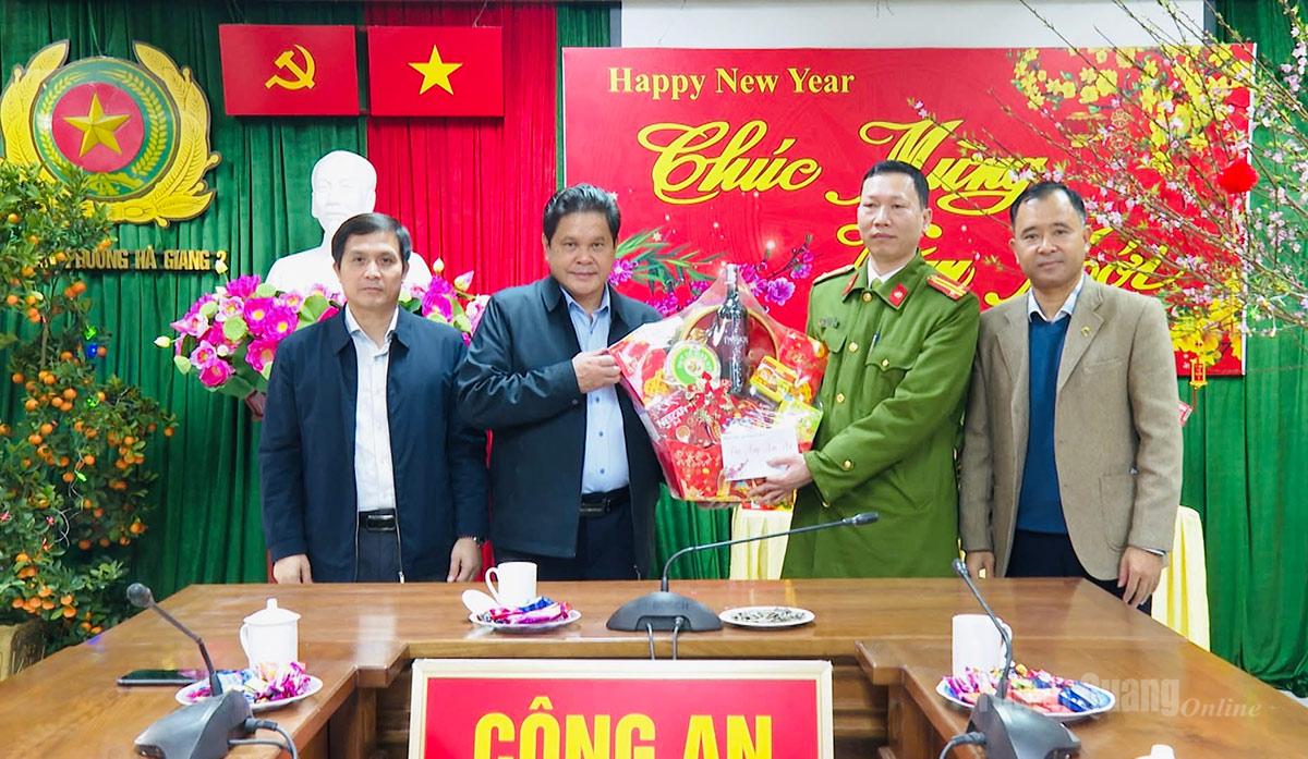 Tại Công an phường Hà Giang 2, đồng chí ghi nhận, biểu dương tinh thần trách nhiệm, sự nỗ lực của cán bộ, chiến sĩ trong thực hiện nhiệm vụ bảo đảm an ninh trật tự trên địa bàn. Đồng chí đề nghị đơn vị tiếp tục thực hiện nghiêm chỉ đạo của Công an tỉnh và Đảng ủy, UBND phường, chủ động nắm chắc tình hình, tăng cường các biện pháp bảo đảm an ninh trật tự, an toàn giao thông, góp phần để Nhân dân vui Xuân, đón Tết an toàn, lành mạnh.