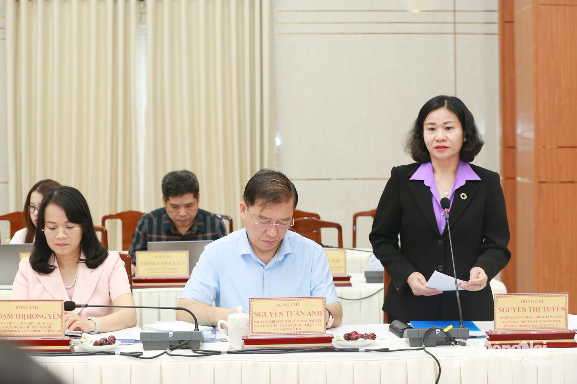 Đồng chí Nguyễn Thị Tuyến, Ủy viên Trung ương Đảng, Phó Chủ tịch Ủy ban Trung ương MTTQ Việt Nam, Chủ tịch Hội Liên hiệp phụ nữ Việt Nam phát biểu tại buổi làm việc. Ảnh: Huy Anh