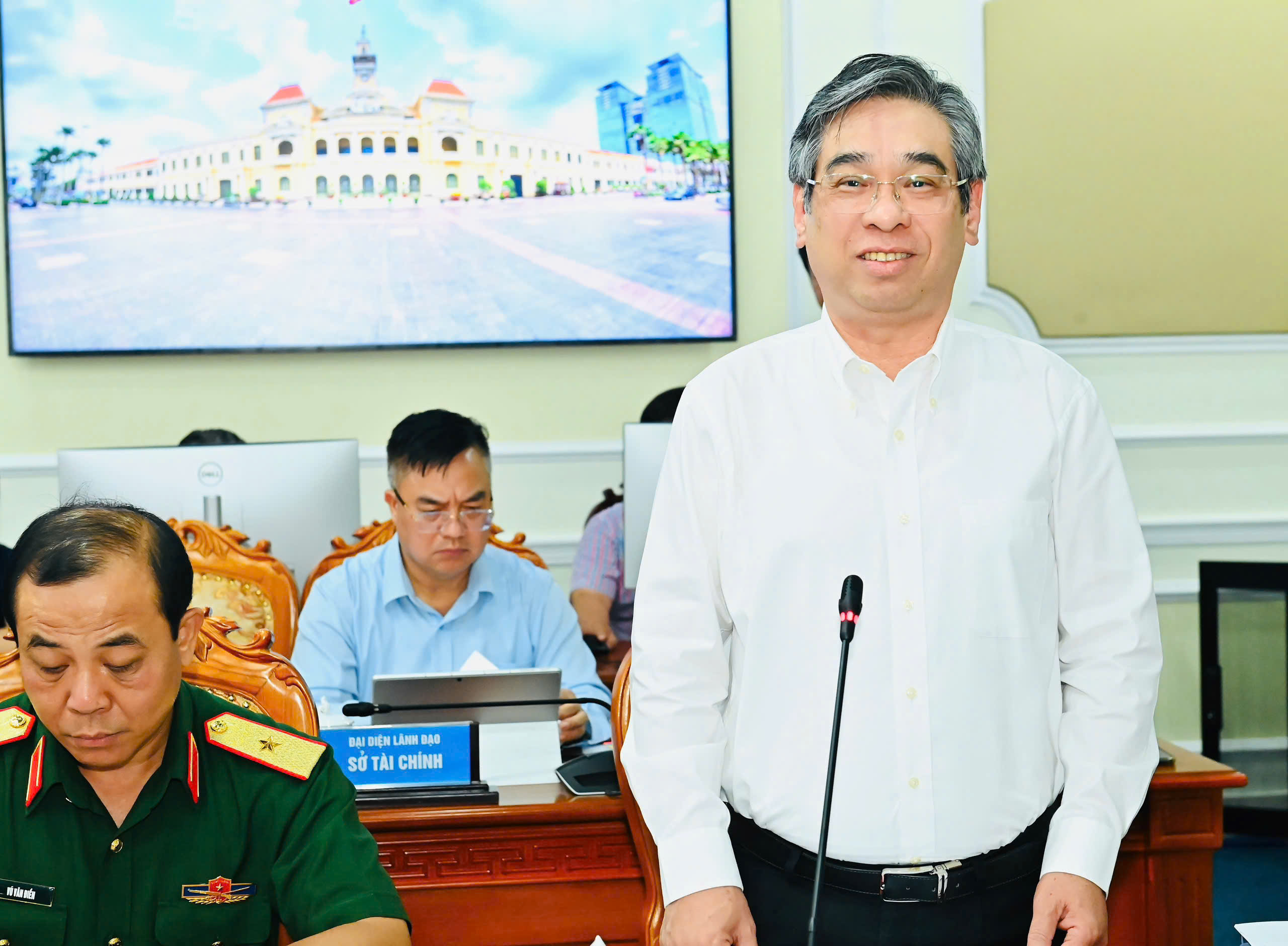 Đồng chí Võ Văn Minh, Phó Bí thư Thành ủy, Chủ tịch HĐND TPHCM, Chủ tịch Ủy ban bầu cử phát biểu tại phiên họp. Ảnh: VIỆT DŨNG
