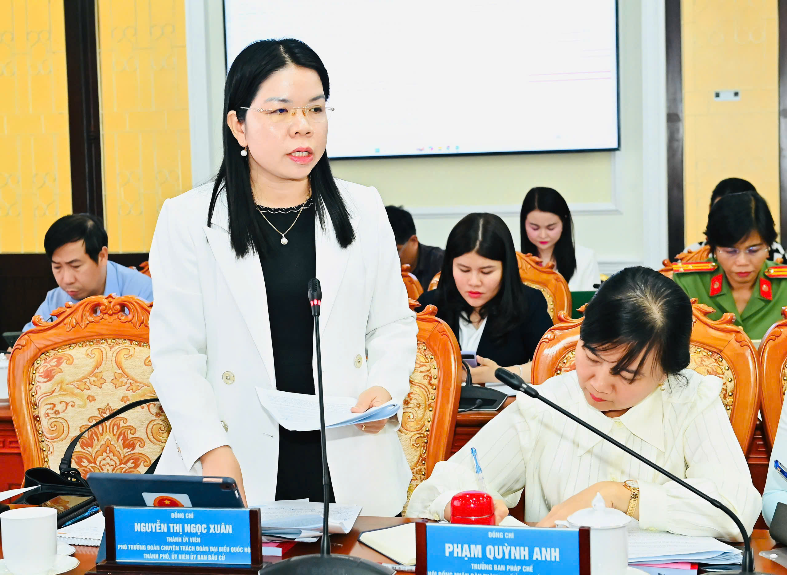 Phó trưởng đoàn chuyên trách đoàn ĐBQH TPHCM Nguyễn Thị Ngọc Xuân phát biểu. Ảnh: VIỆT DŨNG