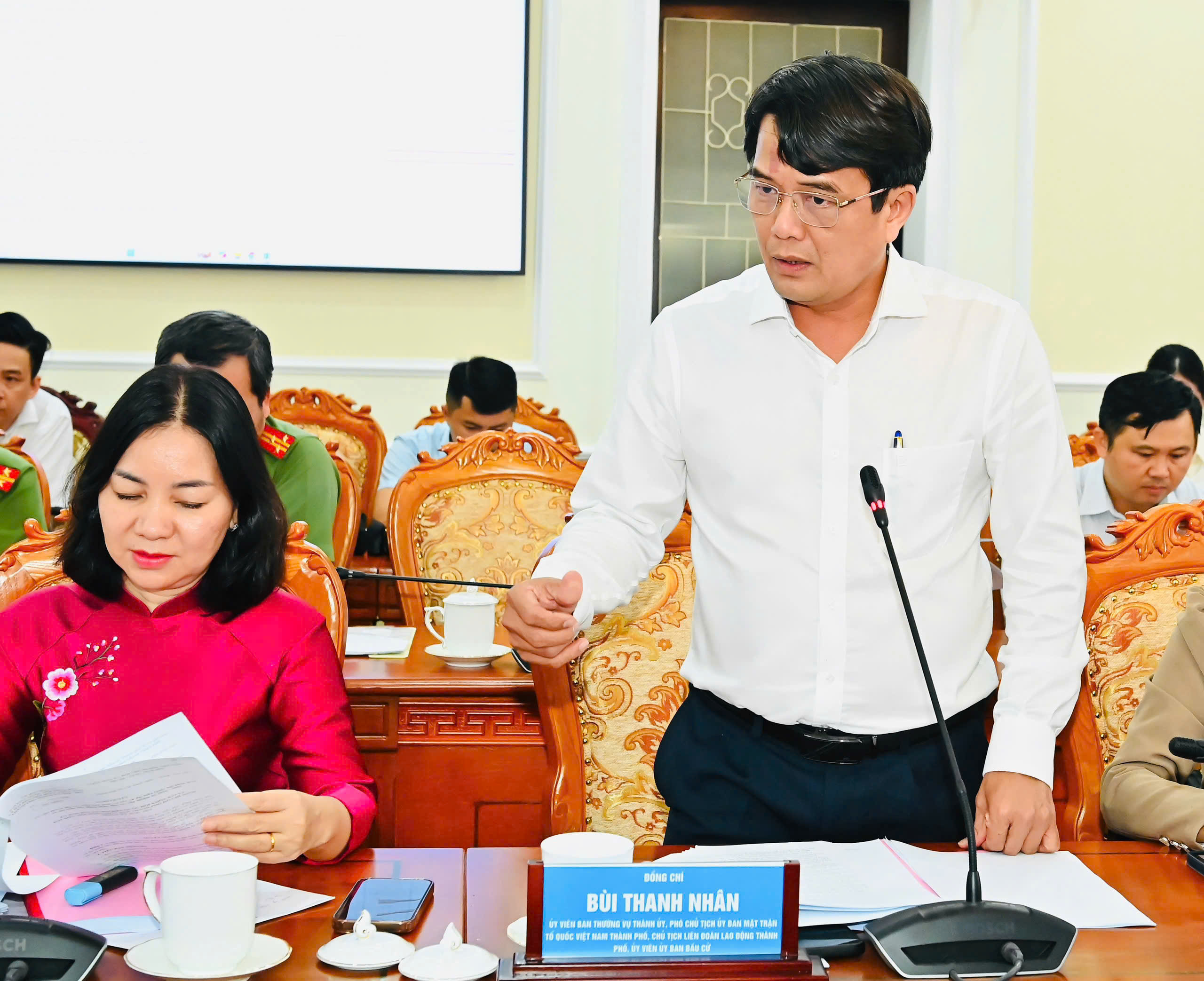 Phó Chủ tịch Ủy ban MTTQ Việt Nam TPHCM, Chủ tịch Liên đoàn Lao động TPHCM Bùi Thanh Nhân phát biểu. Ảnh: VIỆT DŨNG