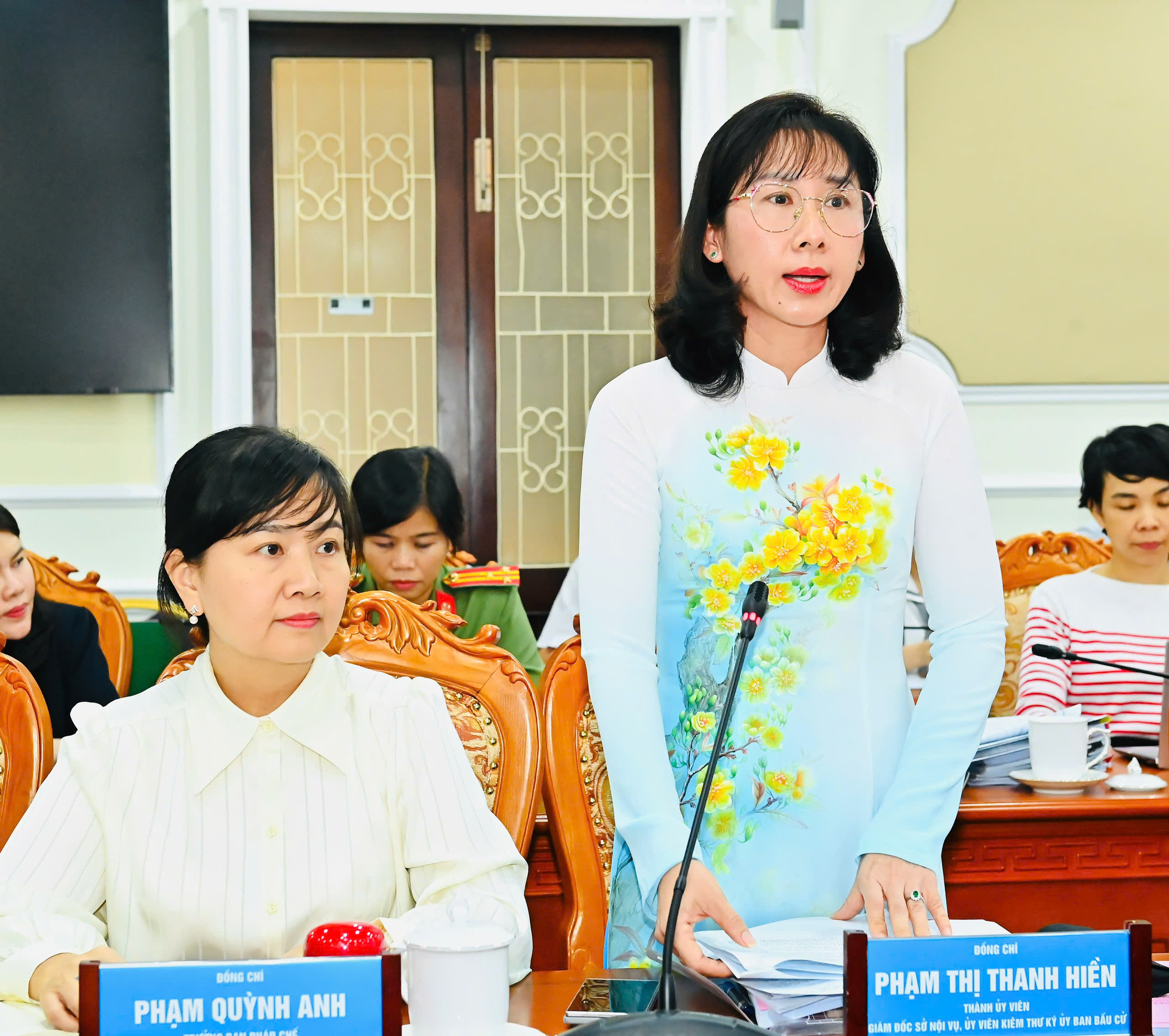 Giám đốc Sở Nội vụ TPHCM Phạm Thị Thanh Hiền phát biểu tại phiên họp. Ảnh: VIỆT DŨNG