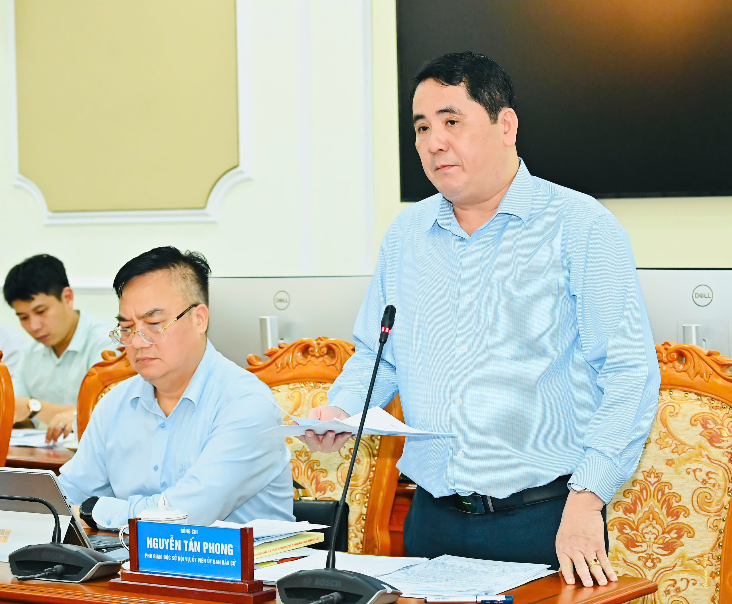 Phó Giám đốc Sở Nội vụ TPHCM Nguyễn Tấn Phong thông báo quyết định thành lập Ủy ban bầu cử. Ảnh: VIỆT DŨNG