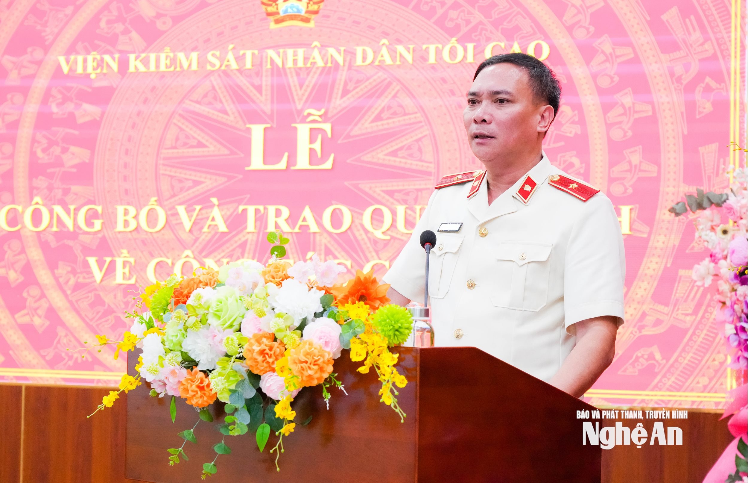 Tại buổi lễ, đại diện lãnh đạo Vụ Tổ chức cán bộ Viện Kiểm sát nhân dân tối cao đã công bố quyết định của Viện trưởng Viện Kiểm sát nhân dân tối cao về việc điều động, bổ nhiệm đồng chí Vũ Xuân Đông, Kiểm sát viên cao cấp, Phó Viện trưởng Viện Kiểm sát nhân dân tỉnh Hưng Yên giữ chức vụ Viện trưởng Viện Kiểm sát nhân dân tỉnh Nghệ An.