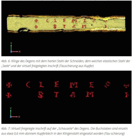 Nhờ vậy, nhóm nghiên cứu đã phát hiện tên của một thợ rèn kiếm nổi tiếng sống vào cuối thế kỷ 16 có tên là Clemes Stam. Ông sống ở thị trấn Solingen và rất nổi tiếng với nghề rèn kiếm. Ông đã chế tạo vũ khí cho nhiều quý tộc ở châu Âu, bao gồm cả nhà vua Tây Ban Nha. Ảnh: INNOVENT.
