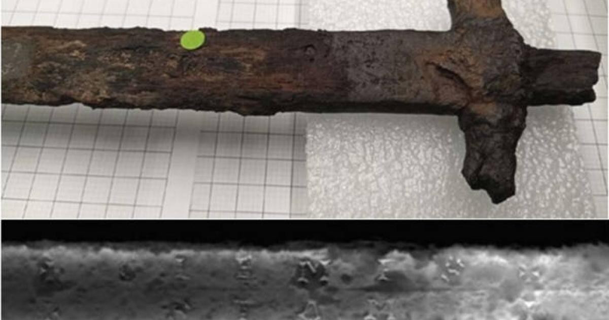 Nhờ công nghệ CT hiện đại, các nhà nghiên cứu đã phát hiện ra dòng chữ ẩn trên một thanh kiếm thời Phục Hưng bị ăn mòn nặng. Thanh kiếm này được tìm thấy trong khu vực một nhà thời ở Jena, Đức bị phá hủy trong Thế chiến 2 (1939 - 1945). Ảnh: INNOVENT.