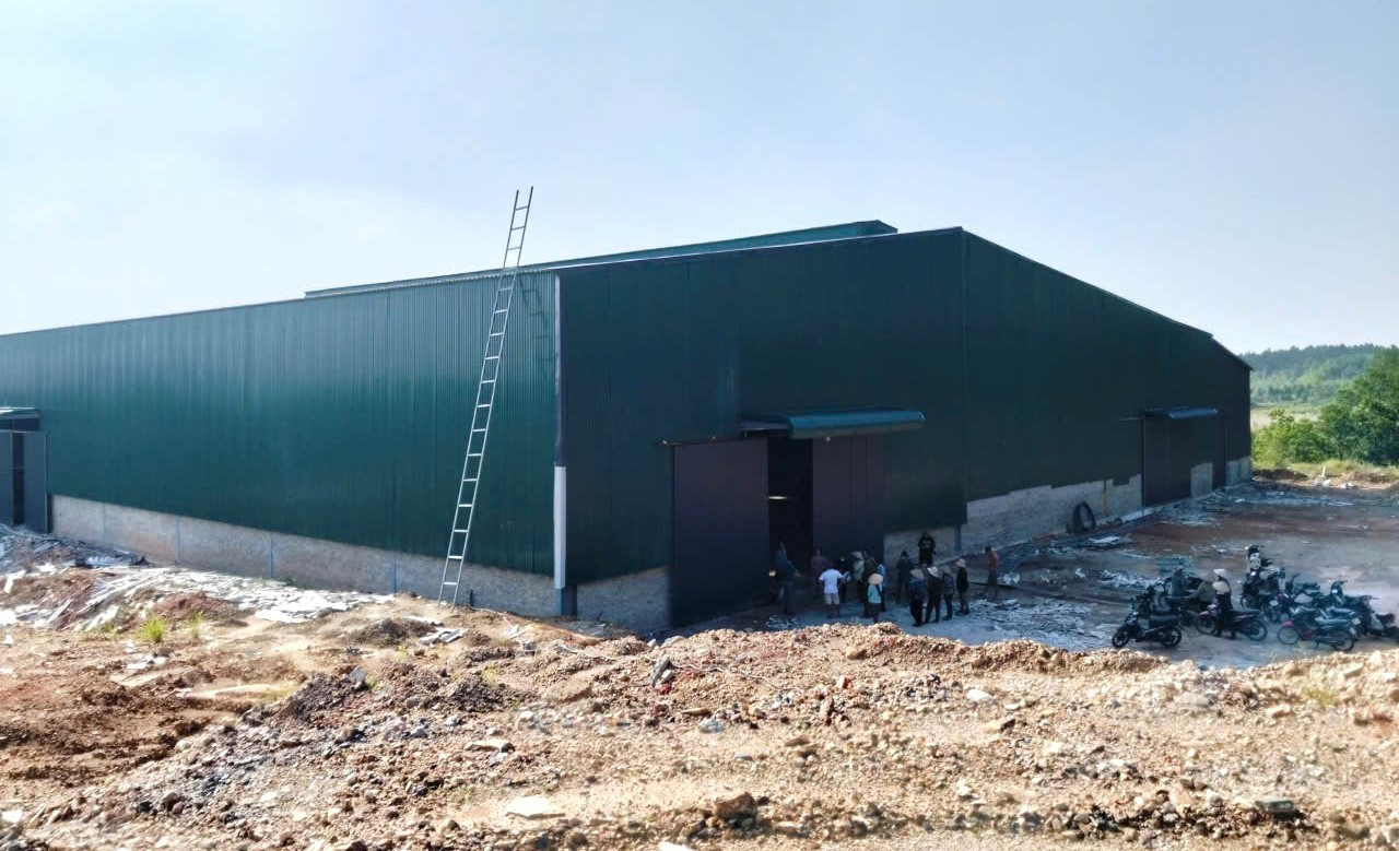 Nhà xưởng được quây tôn, khung thép sơ sài, hoạt động gần như suốt ngày đêm, phát ra tiếng ồn, khói bụi và mùi hóa chất nồng nặc.