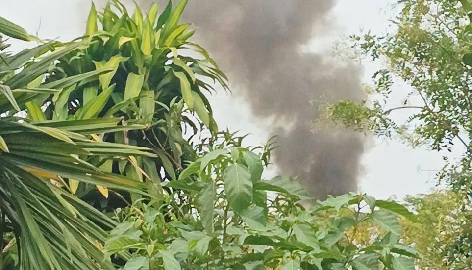 Khói đen xả trực tiếp ra môi trường khiến khu vực dân cư chìm trong mùi hắc khó chịu.