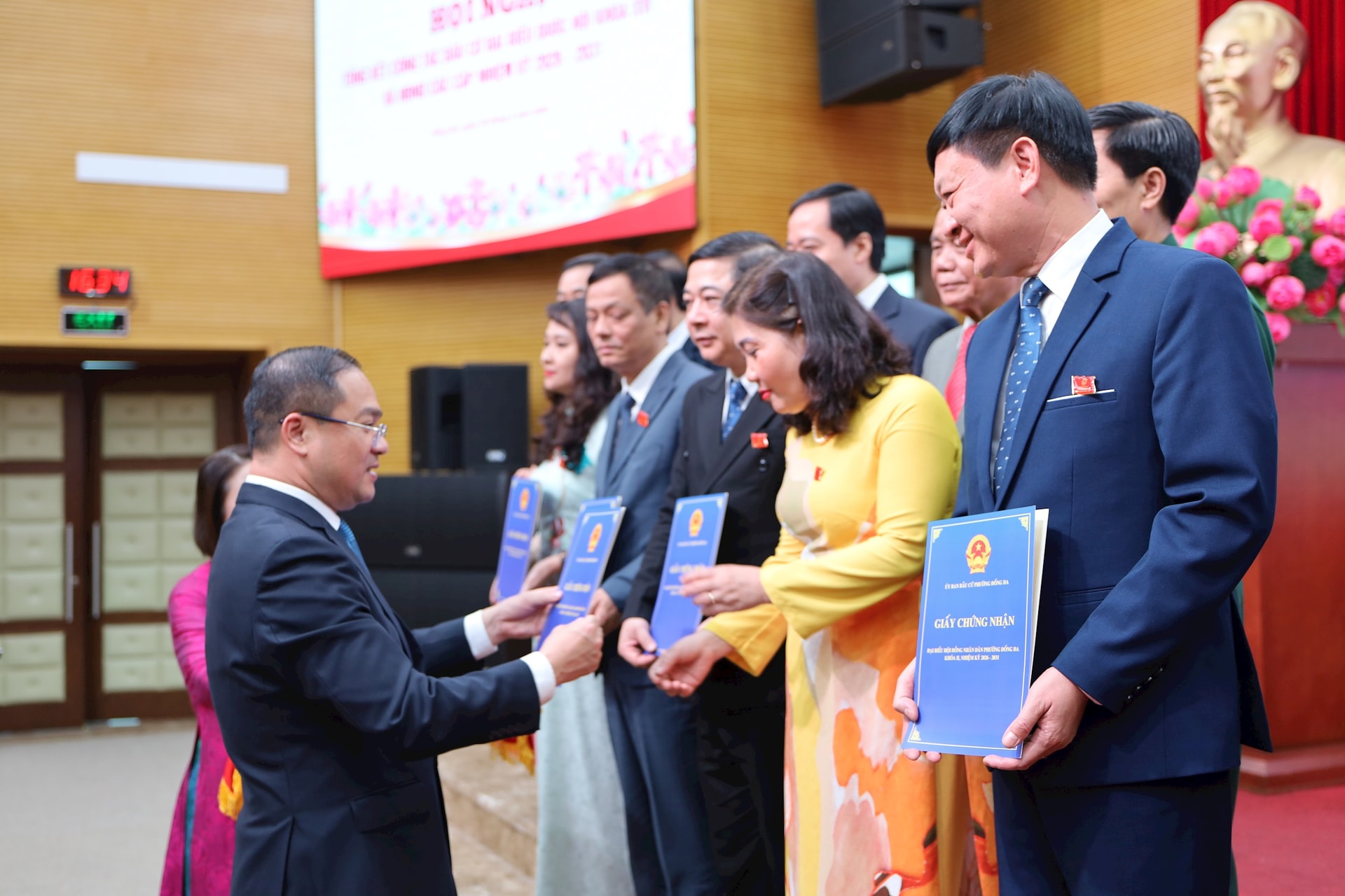 Ủy ban Bầu cử phường Đống Đa đã trao giấy chứng nhận cho các đại biểu HĐND phường khóa II, nhiệm kỳ 2026 - 2031. Ảnh: Hoa Thành