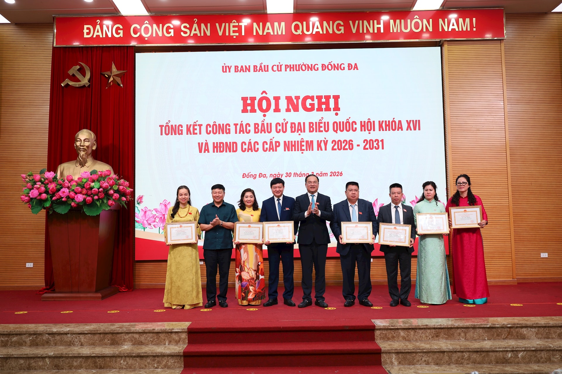 Tại hội nghị, Ủy ban Bầu cử phường Đống Đa đã trao giấy chứng nhận cho các đại biểu HĐND phường khóa II, nhiệm kỳ 2026 - 2031, đồng thời biểu dương, khen thưởng các tập thể, cá nhân có thành tích xuất sắc trong công tác bầu cử. Đây là sự động viên kịp thời, góp phần tiếp tục lan tỏa khí thế thi đua, tinh thần đoàn kết, trách nhiệm, tạo nền tảng để phường Đống Đa thực hiện hiệu quả các nhiệm vụ chính trị trong thời gian tới.
