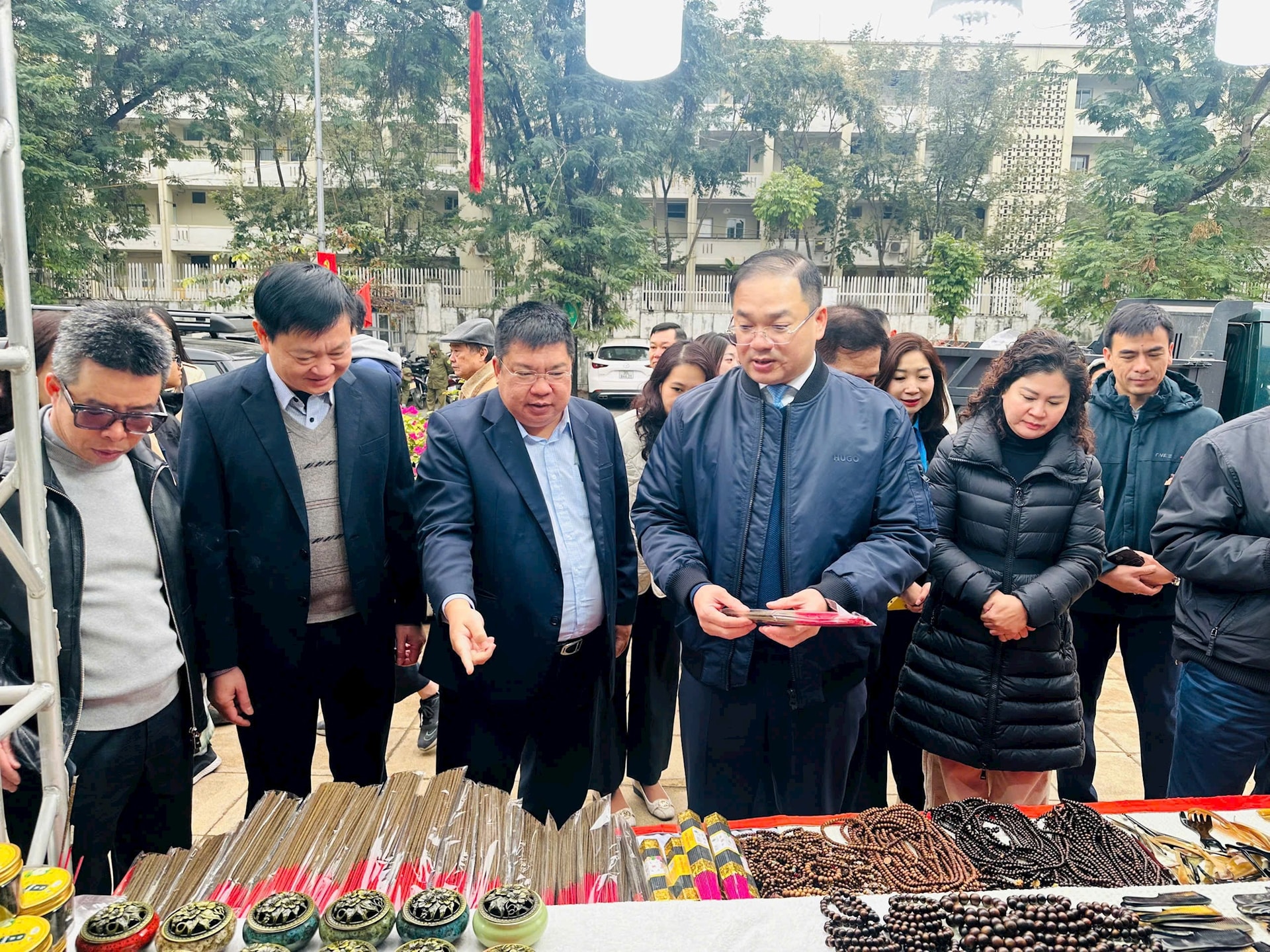 Thường trực Đảng ủy phường Đống Đa tham quan các gian hàng tại Chương trình “Tết Sum vầy - Xuân ơn Đảng” năm 2026. Ảnh: Bảo Lâm