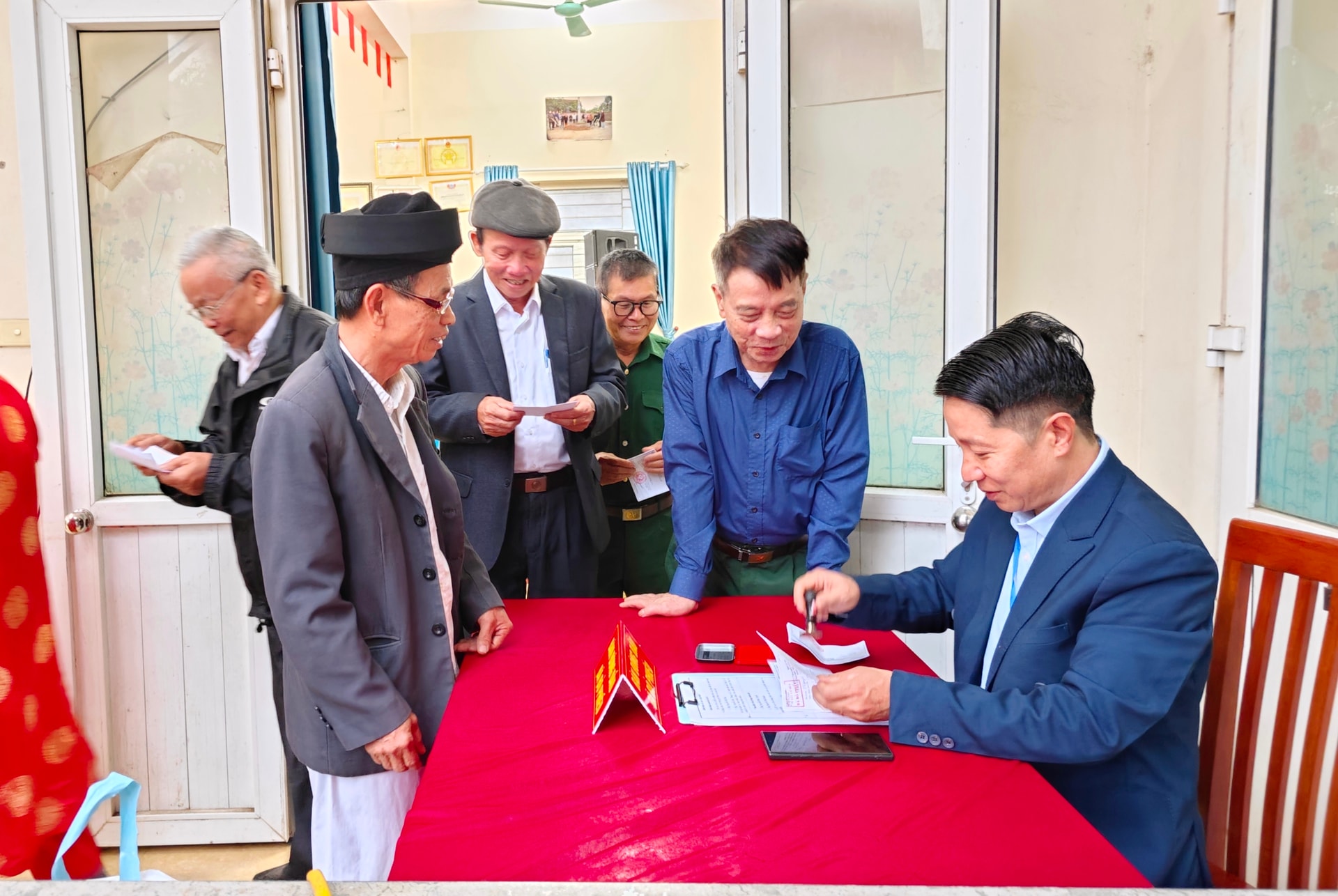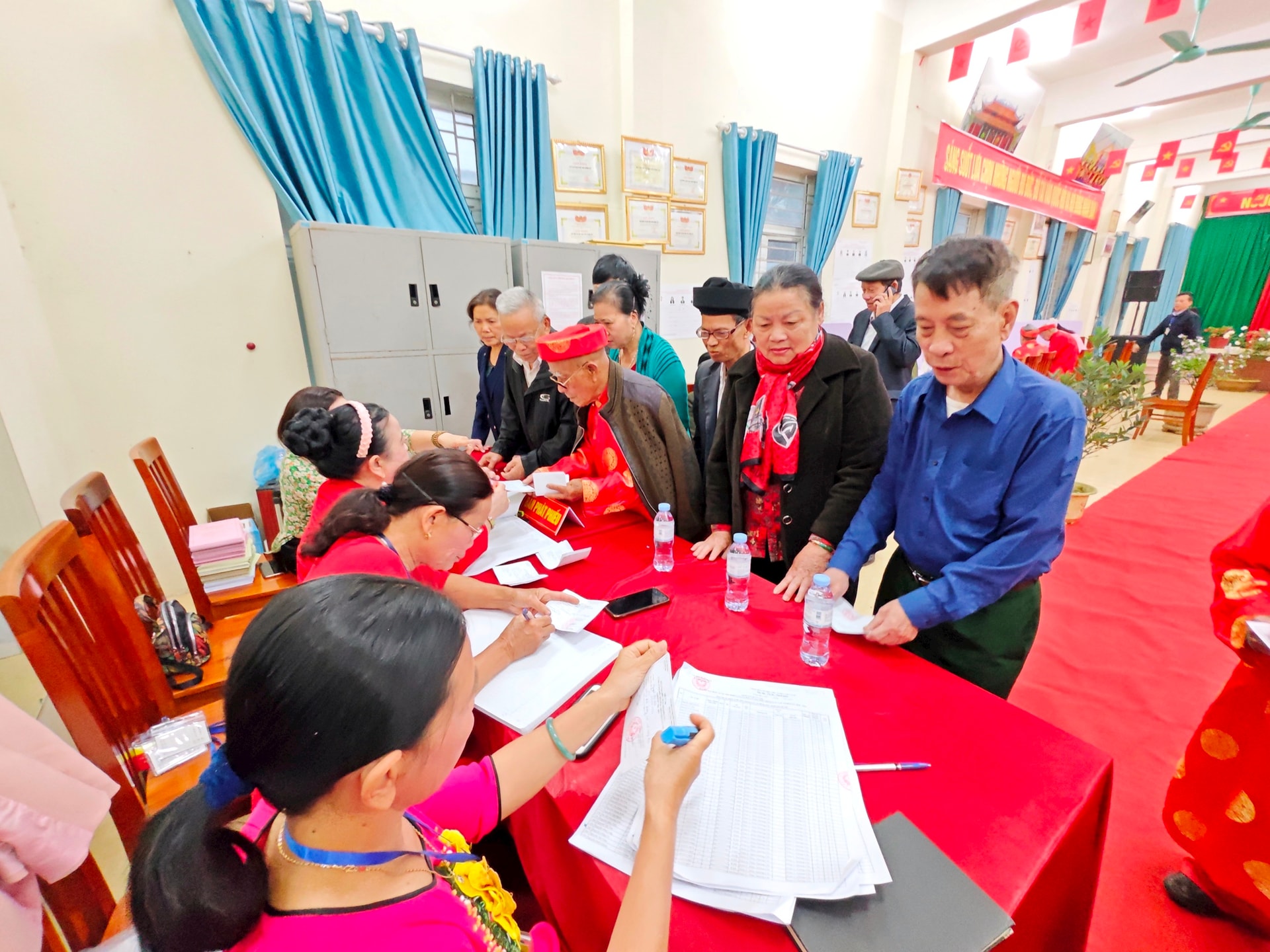 Cử tri xã Hưng Đạo có mặt từ sớm để tham gia bỏ phiếu.