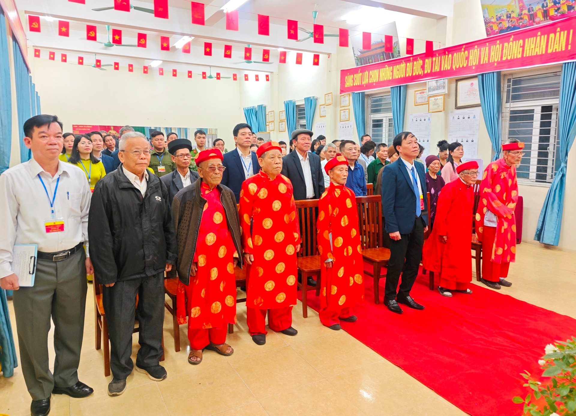 Không khí rộn ràng tại khu vực bỏ phiếu ở xã Hưng Đạo trong sáng ngày bầu cử.