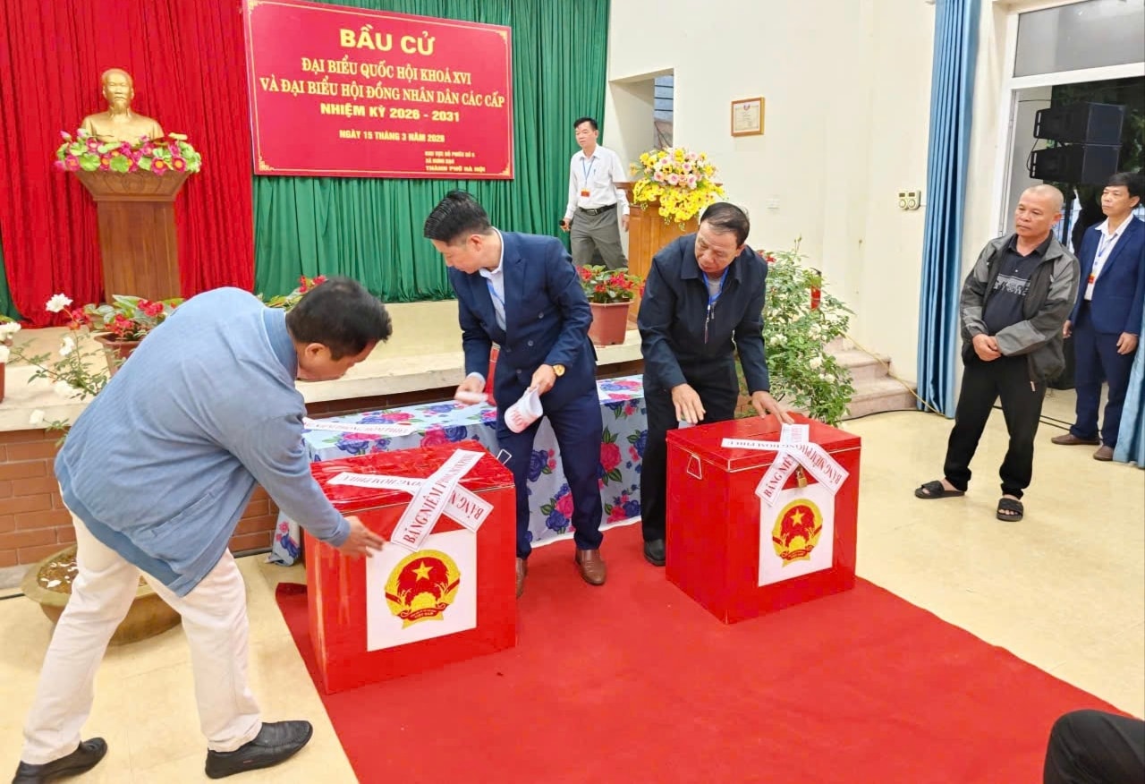 Hòm phiếu được kiểm tra, niêm phong trước sự chứng kiến của cử tri.