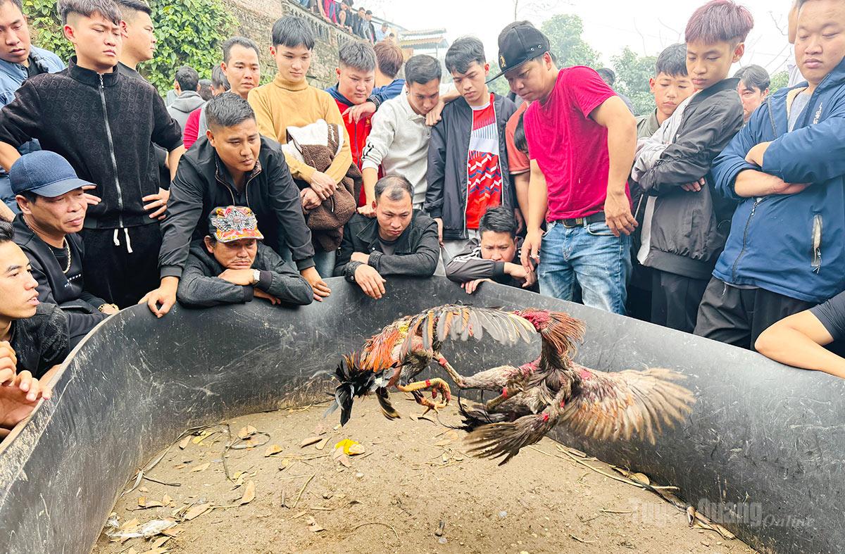 Môn chọi gà thu hút nhân dân và du khách theo dõi.