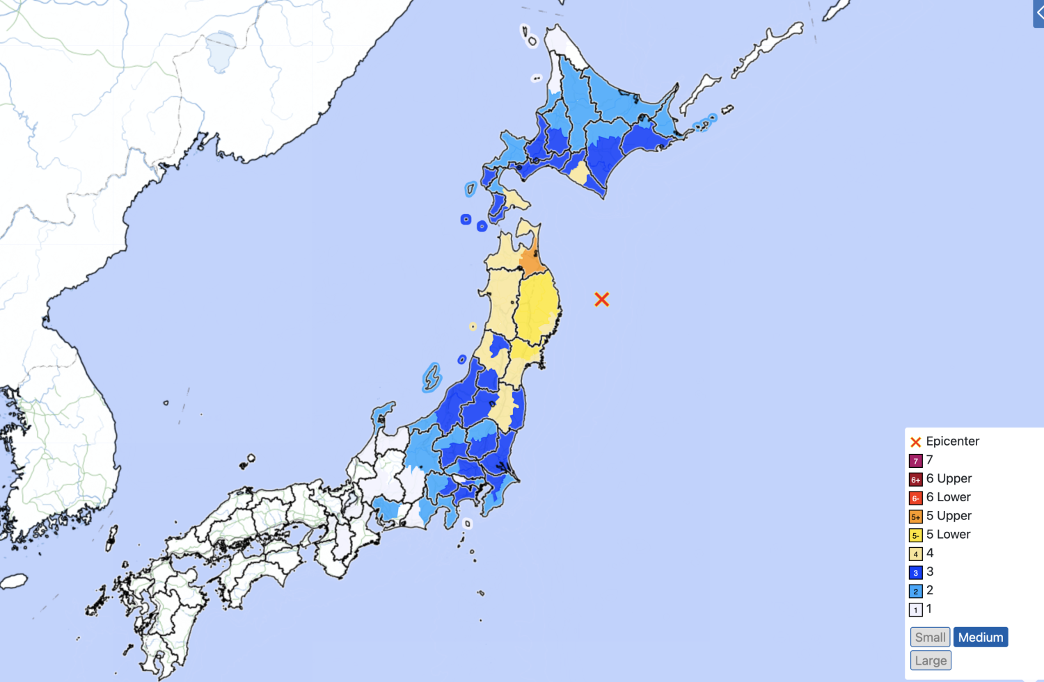 Tại Tokyo, nơi chỉ ghi nhận rung chấn cấp 3, nhiều tòa nhà vẫn lắc lư trong vài phút, cho thấy mức độ lan rộng của trận động đất. JMA cũng ghi nhận mức 3 của hiện tượng “dao động nền chu kỳ dài”, tức các sóng địa chấn có chu kỳ kéo dài và duy trì trong thời gian lâu, tại tỉnh Akita.