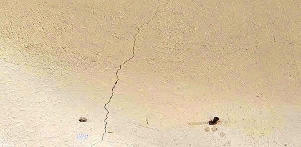 Vết nứt kéo dài xuất hiện trên tường của trường học.