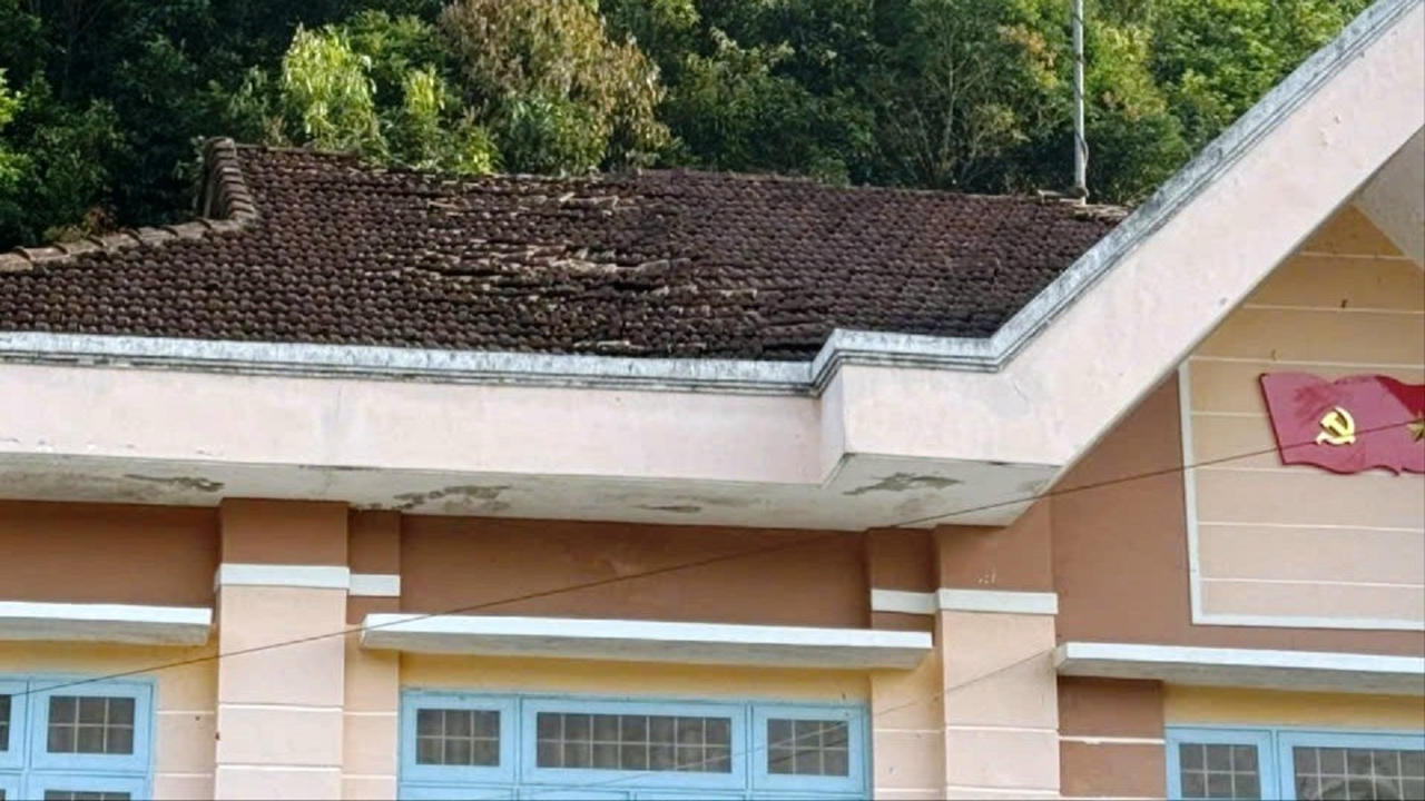 Mái ngói của nhà trường hư hỏng nặng sau các trận động đất.