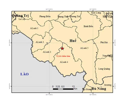 Động đất xảy ra trên địa bàn xã A Lưới 4. Ảnh: Trực ban Ban Chỉ huy phòng thủ Dân sự TP. Huế cung cấp)