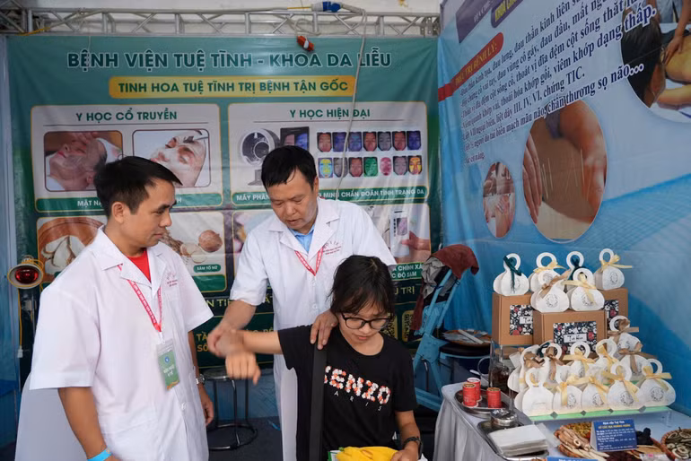 Đội ngũ bác sĩ từ Bệnh viện Tuệ Tĩnh đã liên tục thực hiện khám, tư vấn sức khỏe miễn phí, xoa bóp, bấm huyệt…, đồng thời hướng dẫn bà con những kỹ năng chăm sóc sức khỏe đơn giản tại nhà; tư vấn chế độ dinh dưỡng hợp lý, phòng bệnh chủ động.